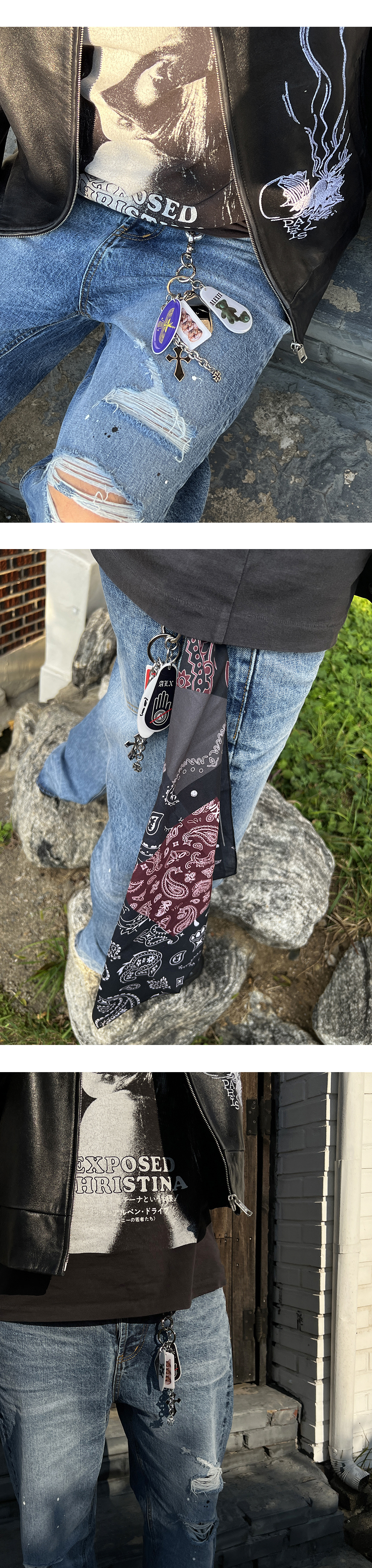 [ALEXII] TOO MUCH KEYRING VER.2 베스트 셀러 상품이었던 투머치키링의 두번째 버전입니다. 알렉시만의 감성이 담긴 메달과 십자가 펜던트로 조합하였으며, 앞뒤가 모두 다른 모양입니다. 추가로 다른 악세서리도 함께 걸어 바지나 가방 등에 포인트를 주기 좋은 아이템입니다. # 열쇠가 꾸러미 형태로 여러개 달려있어서 운반 중의 마찰로 인해 기스 등 이 있을 수 있습니다. # 메달의 경우 에폭시 공정(투명 액체를 올려서 굳히는 공정)을 통하여 제작되므로 공정 특성상 작업 중에 작은 기포 등이 있을 수 있습니다. - MEDAL : EPOXY , SURGICAL STEEL - SILVER-TONE METAL HOOK CLOSURE - HAND MADE IN KOREA SIZE & FIT WIDTH 1.8 cm / LENGTH 22.5 cm