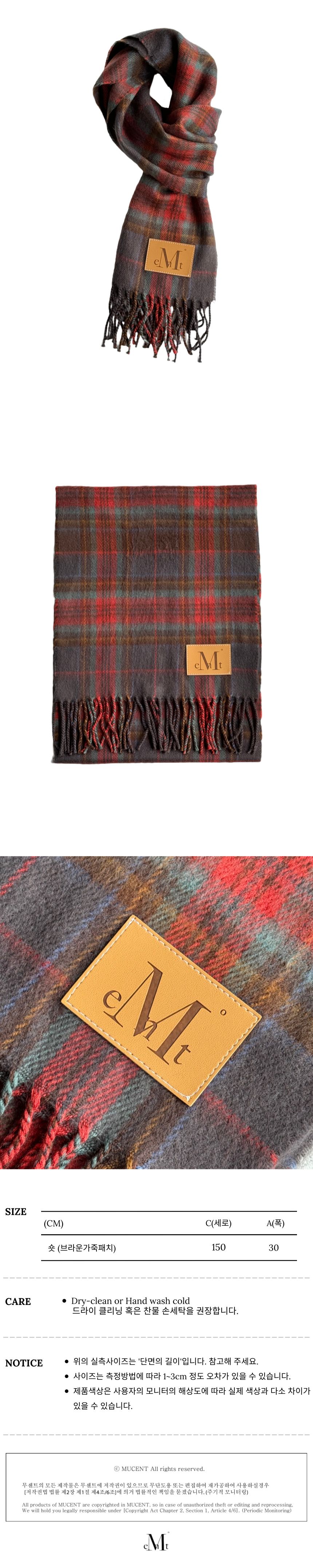 ┃Detail • 체크 컬러 패턴 • 숏 기장의 머플러 • 가볍고 보들보들한 텍스처 • 포인트 체크 컬러 • 가죽 패치 디테일 ┃Material : Polyester 100% ┃Care : Dry cleaning - 무센트는 말기의 행성인 이 지구에서 지속 가능한 옷들을 고민합니다. 우리는 신념을 소비하는 미닝아웃을 지지합니다.