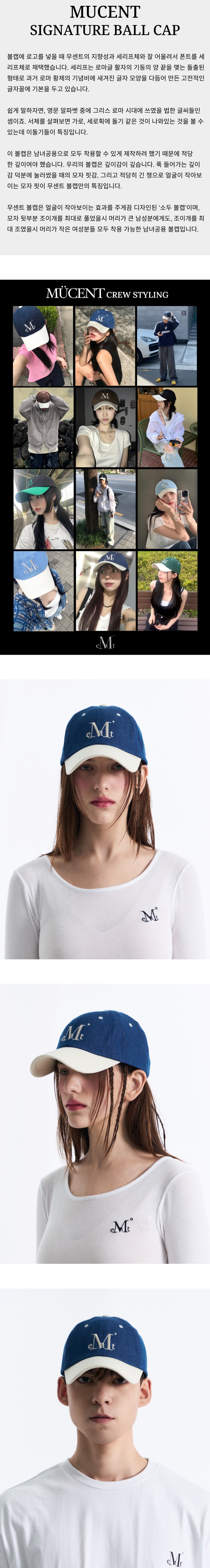 무센트 시그니처 투 톤 배색 볼캡 미드 데님-바닐라