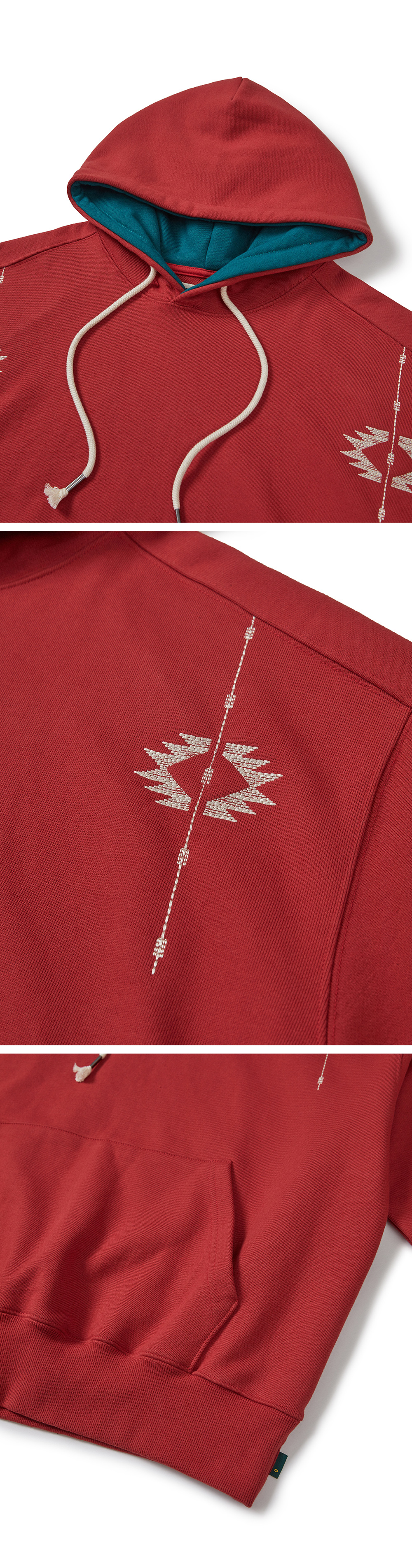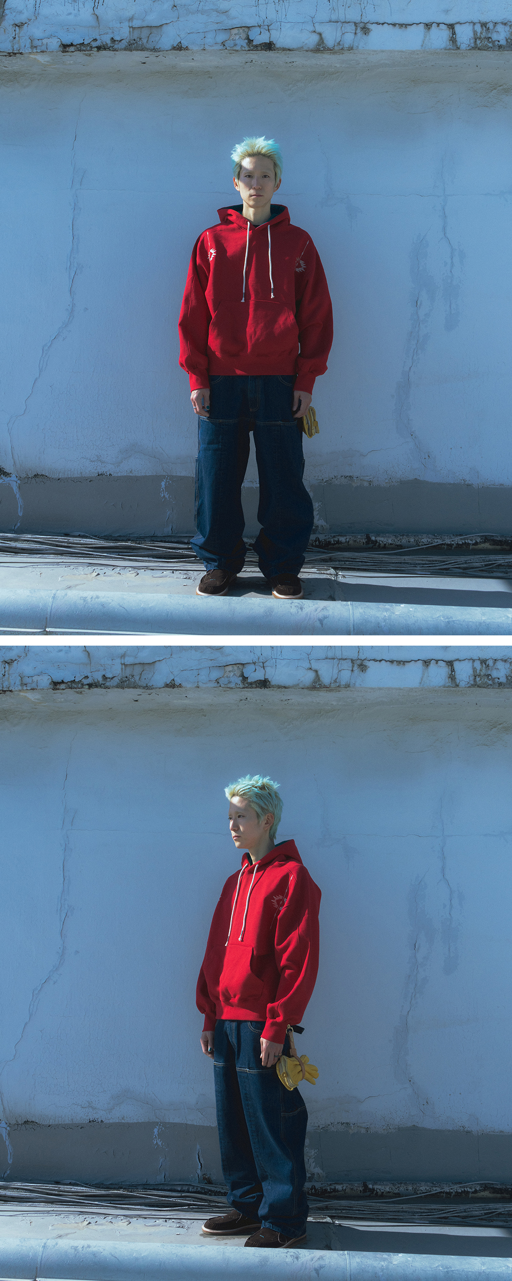 Product Info. - 995g 고중량 헤비쮸리 원단으로 제작되어 탄탄한 실루엣의 후드티 - 여유 있는 오버핏 실루엣과 경쾌한 크롭 기장감의 후드 티셔츠 - 구조적인 패턴 변형을 통하여 자연스럽게 떨어지는 어깨라인 - 후드 안쪽 감각적인 컬러 블럭 디자인 - 전면 양쪽 빈티지 무드의 자수 포인트 - 내추럴 무드의 스트링 디테일
