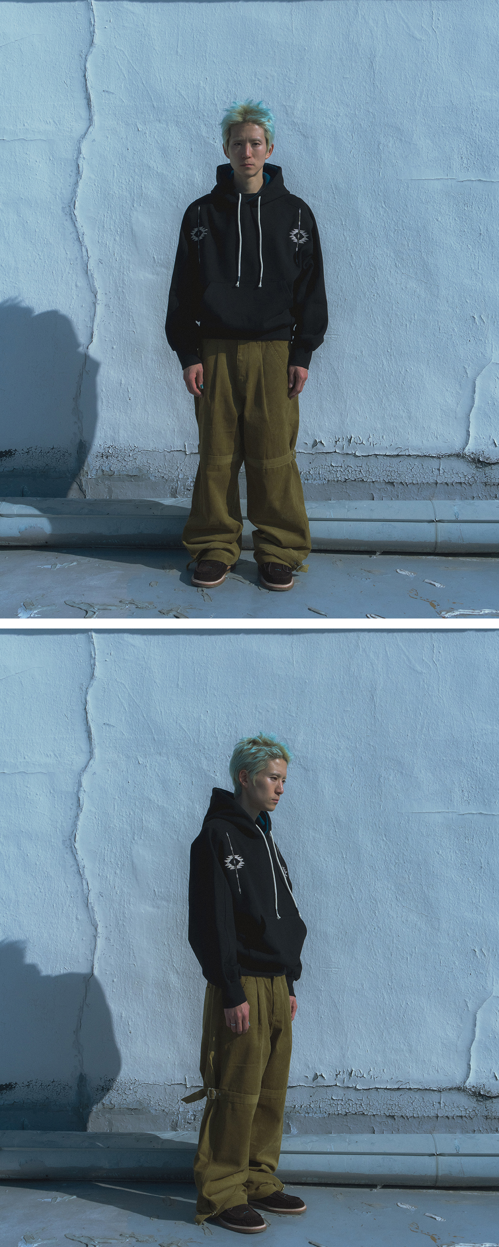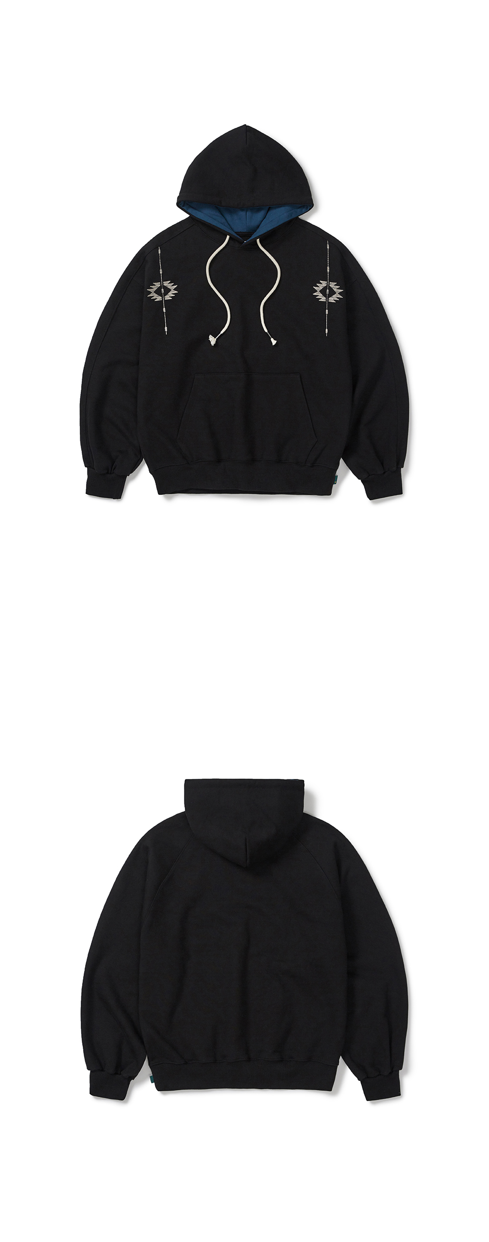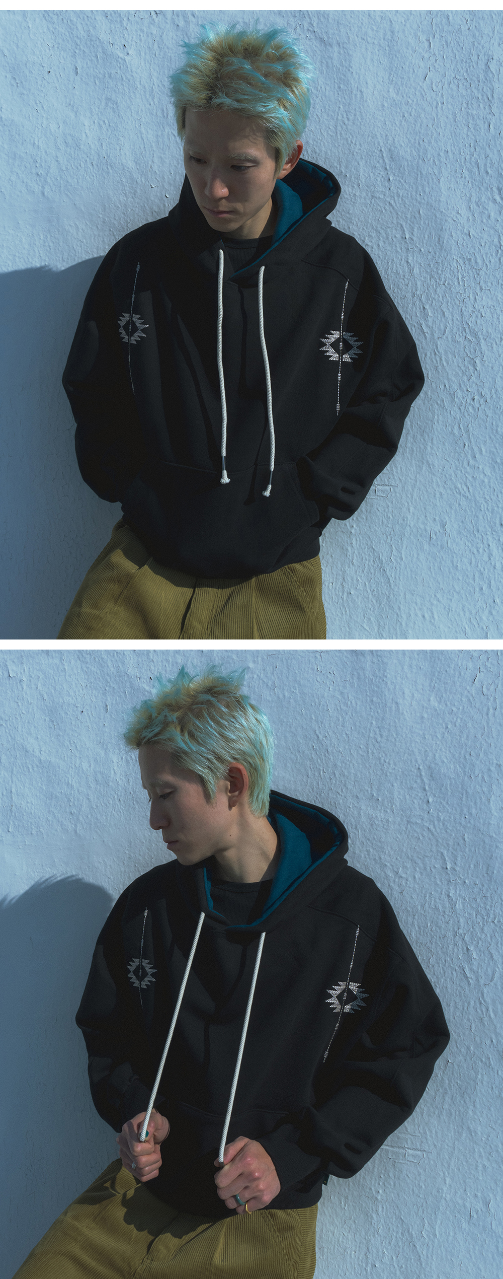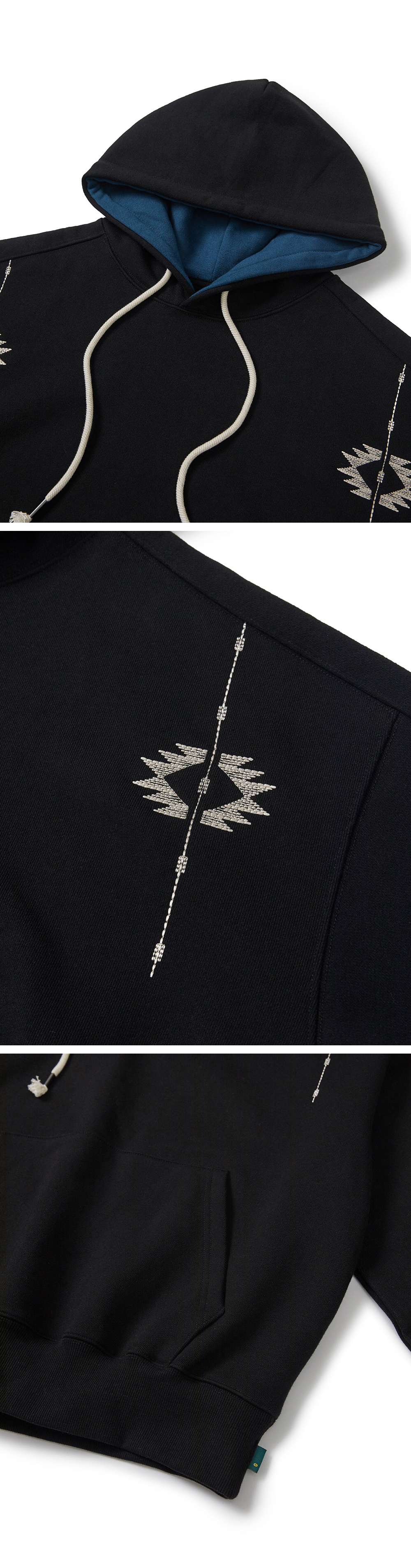 Product Info. - 995g 고중량 헤비쮸리 원단으로 제작되어 탄탄한 실루엣의 후드티 - 여유 있는 오버핏 실루엣과 경쾌한 크롭 기장감의 후드 티셔츠 - 구조적인 패턴 변형을 통하여 자연스럽게 떨어지는 어깨라인 - 후드 안쪽 감각적인 컬러 블럭 디자인 - 전면 양쪽 빈티지 무드의 자수 포인트 - 내추럴 무드의 스트링 디테일