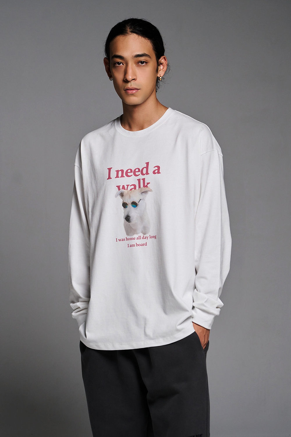 부드러운 촉감의 저지 코튼 긴팔티셔츠 루즈핏 실루엣 헤링본테잎으로 목늘어남 방지 * one size