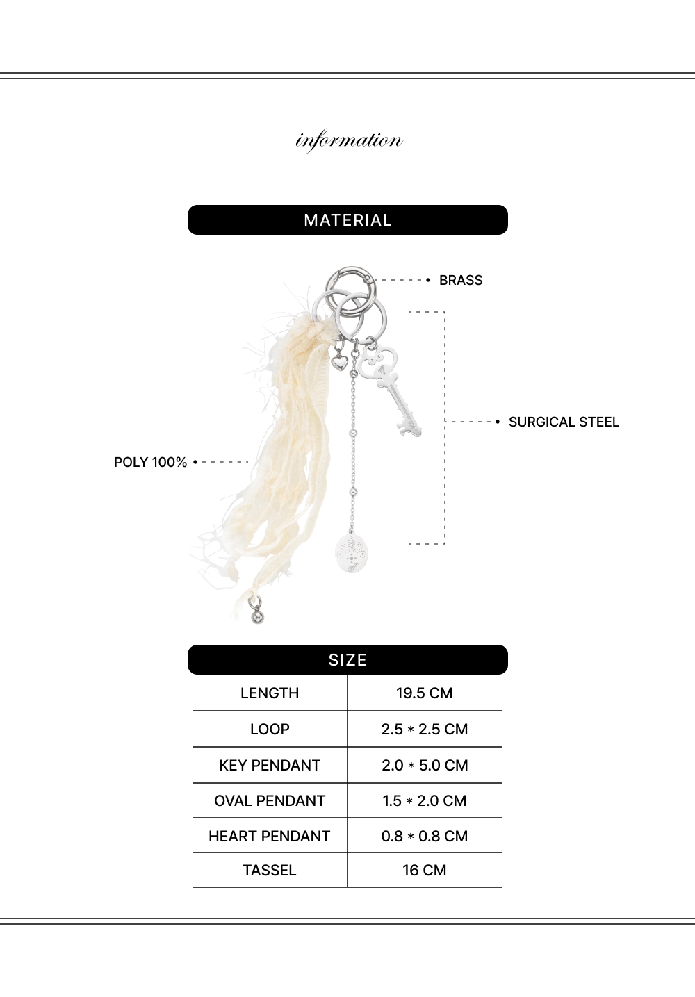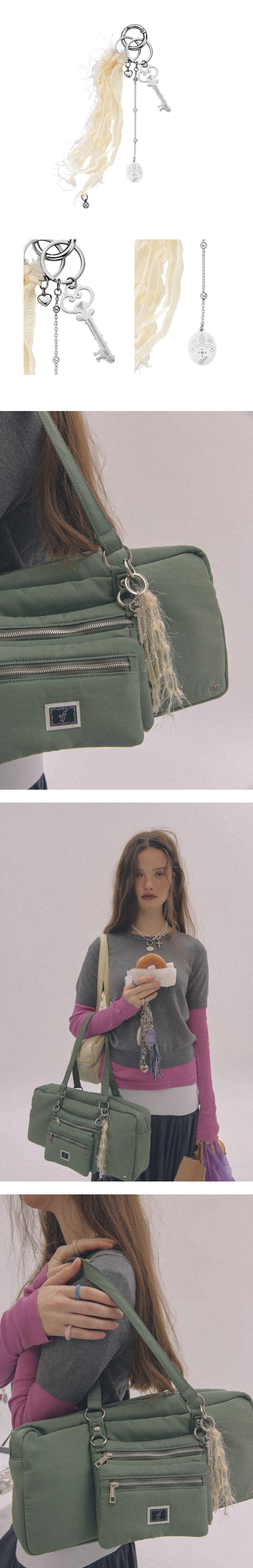 엔프프만의 펜던트들과 부드러운 태슬이 유니크한 조화를 이루는 키링입니다. 화려한 디자인과 은은한 색감이 어우러져 일상에서도 부담 없이 스타일링할 수 있습니다.