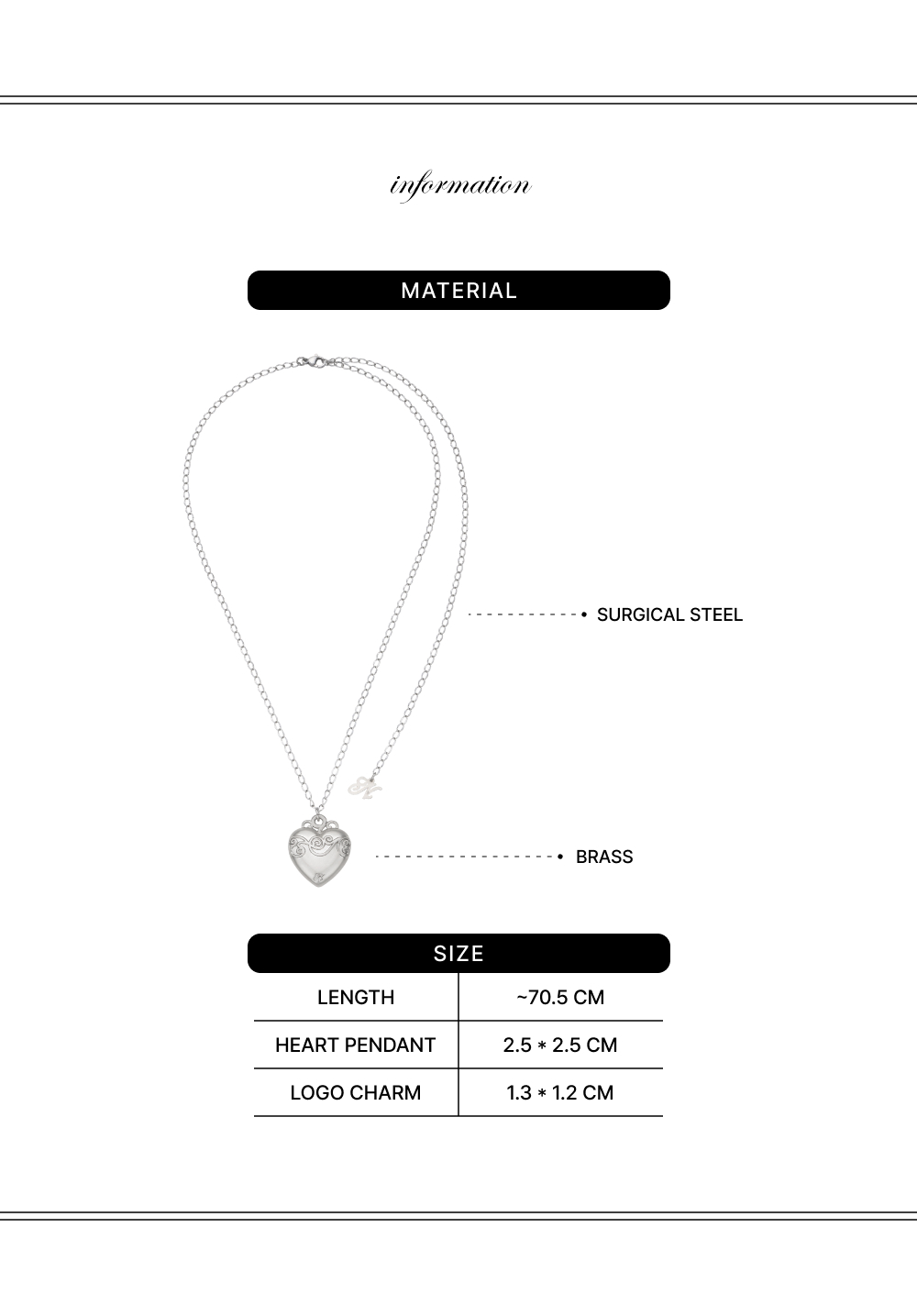 * 볼드한 메탈 펜던트로 인해 약간의 무게감이 느껴질 수 있습니다. 묵직한 착용감과 다양한 길이 조절이 가능한 목걸이입니다. 펜던트의 묵직함과 독특한 문양이 어우러져 엔프프만의 유니크한 무드를 표현합니다.