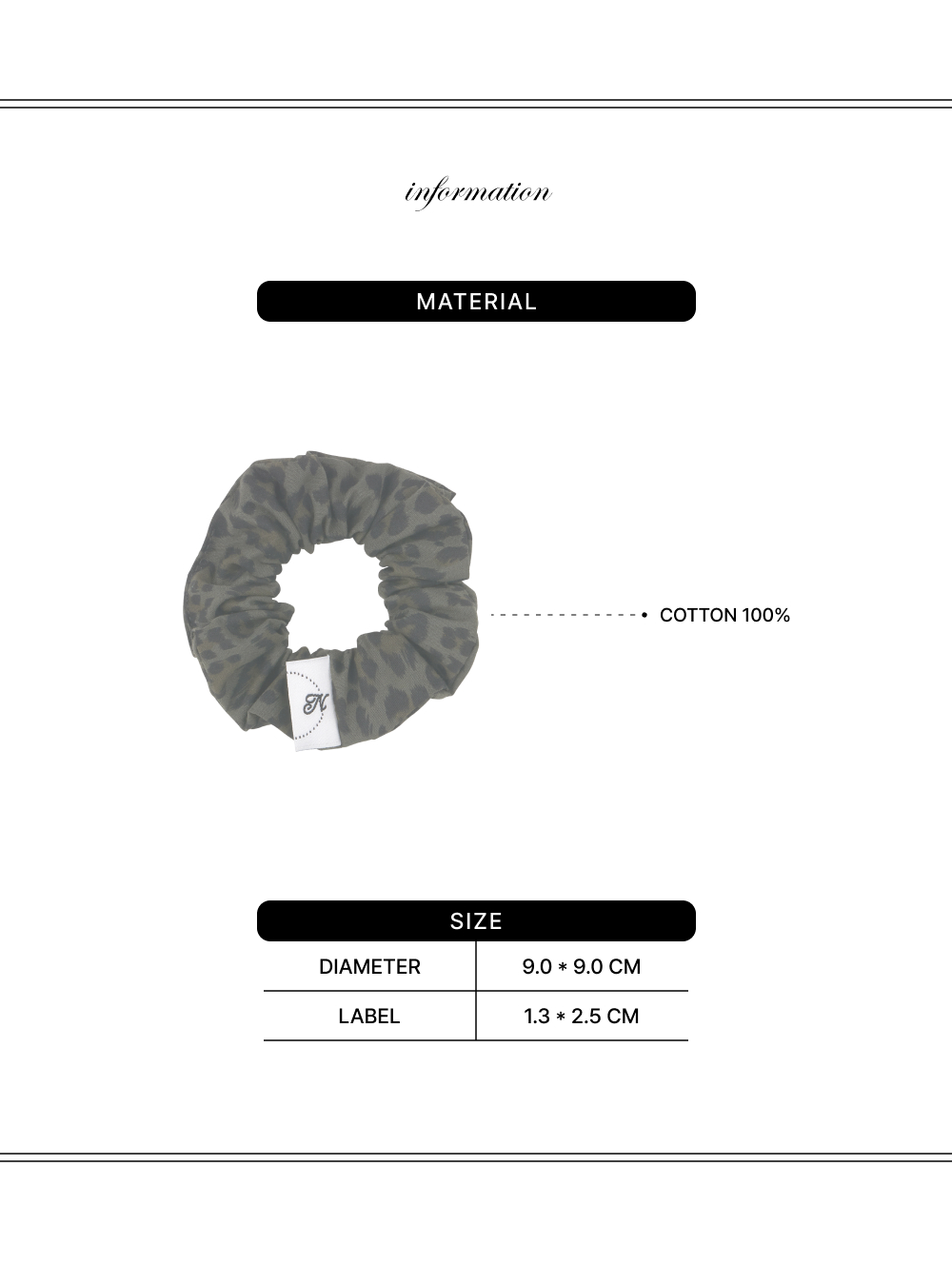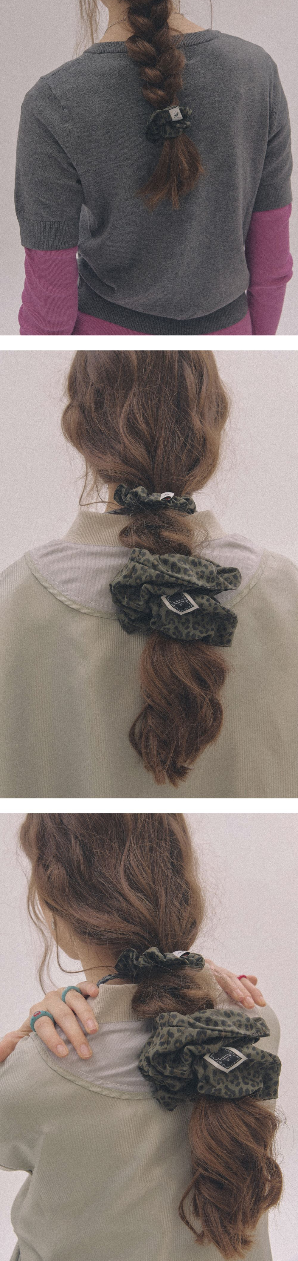 레오파드 문양이 돋보이는 스크런치입니다. 화려한 문양과 차분한 컬러가 더해져 일상에서 다양한 스타일링을 연출할 수 있습니다. 제작 특성상 패턴의 위치는 조금씩 차이가 있습니다. 사진과 동일하게 되지 않는 점 참고 부탁드립니다.