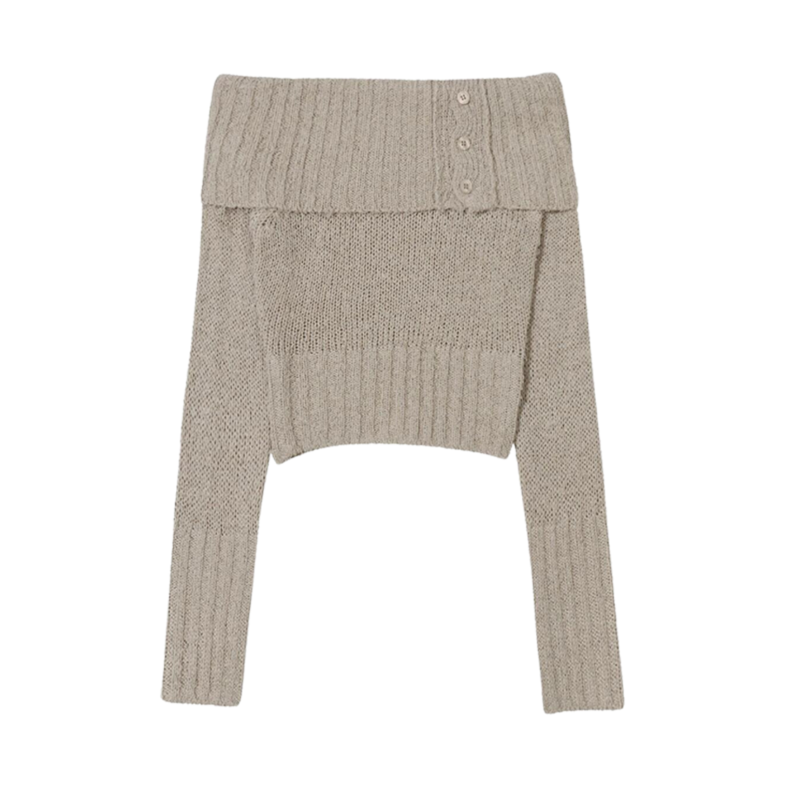 (W) 보헤미안 서울 립드 버튼 오프 숄더 오트밀