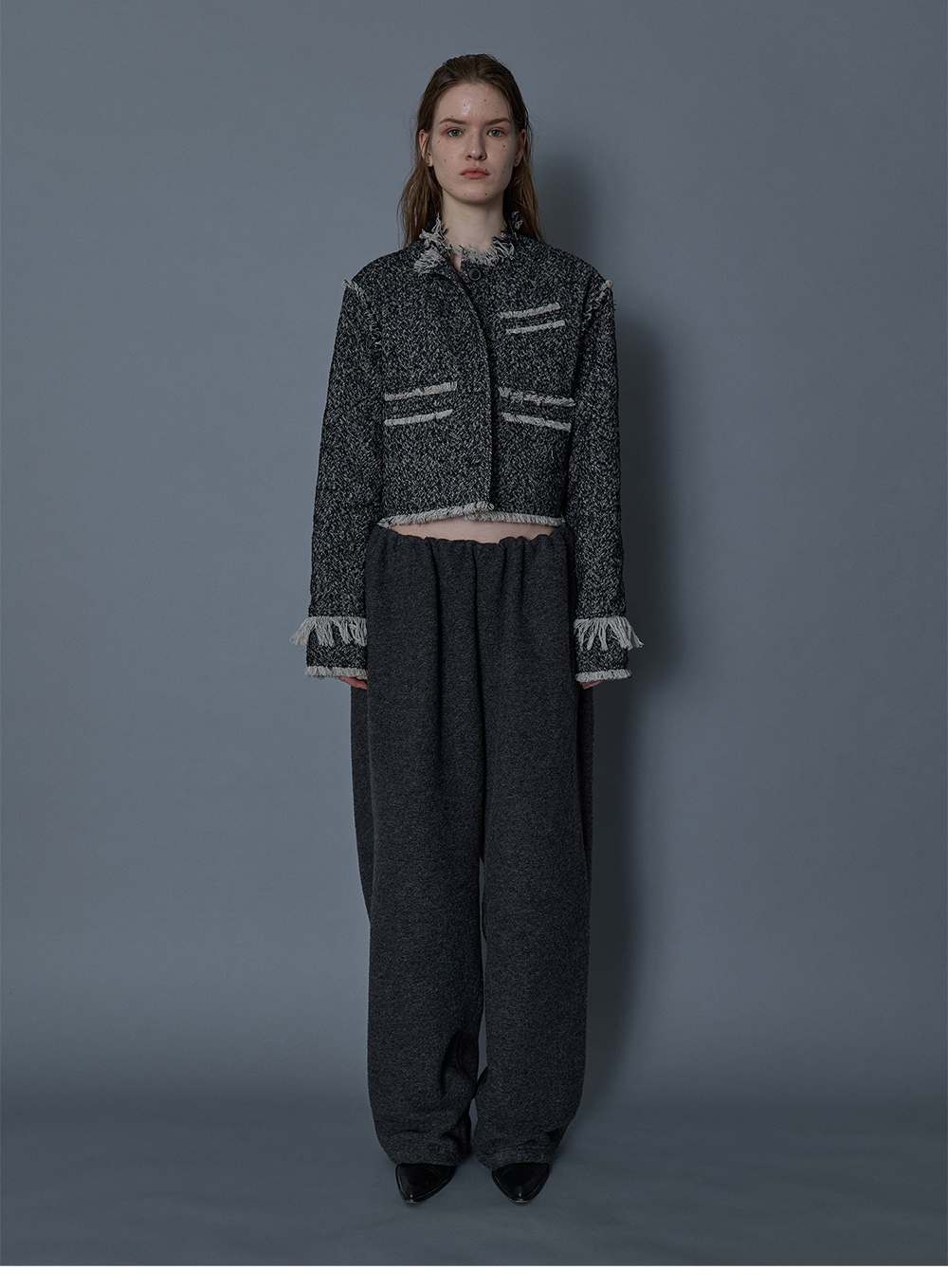 - 상단 퍼프 형태의 볼륨감있는 팬츠 - 따듯한 부클소재의 원단감 - 전면 2개의 포켓 - 부드러운 안감으로 편안한 착용감 - 루즈핏의 실루엣 * 174cm and she is wearing size 2 * Shell : 78% Polyester, 22% Wool (Japanese Fabric) * Lining : 100% Polyester * Made in Korea
