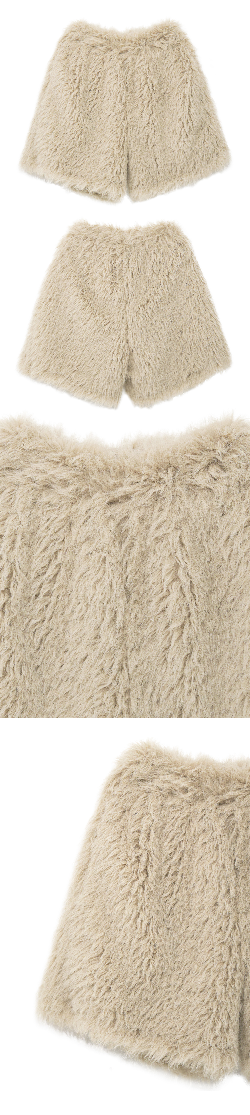 - 부드러운 퍼 소재의 쇼츠 - 전면 두개의 포켓 - 내부 전체 부드러운 안감 - 높은 보온성 - 와이드한 실루엣으로 레이어드에 용이 * 174cm and she is wearing size OS * Shell : 100% Polyester * Lining : 100% Cotton * Made in Korea