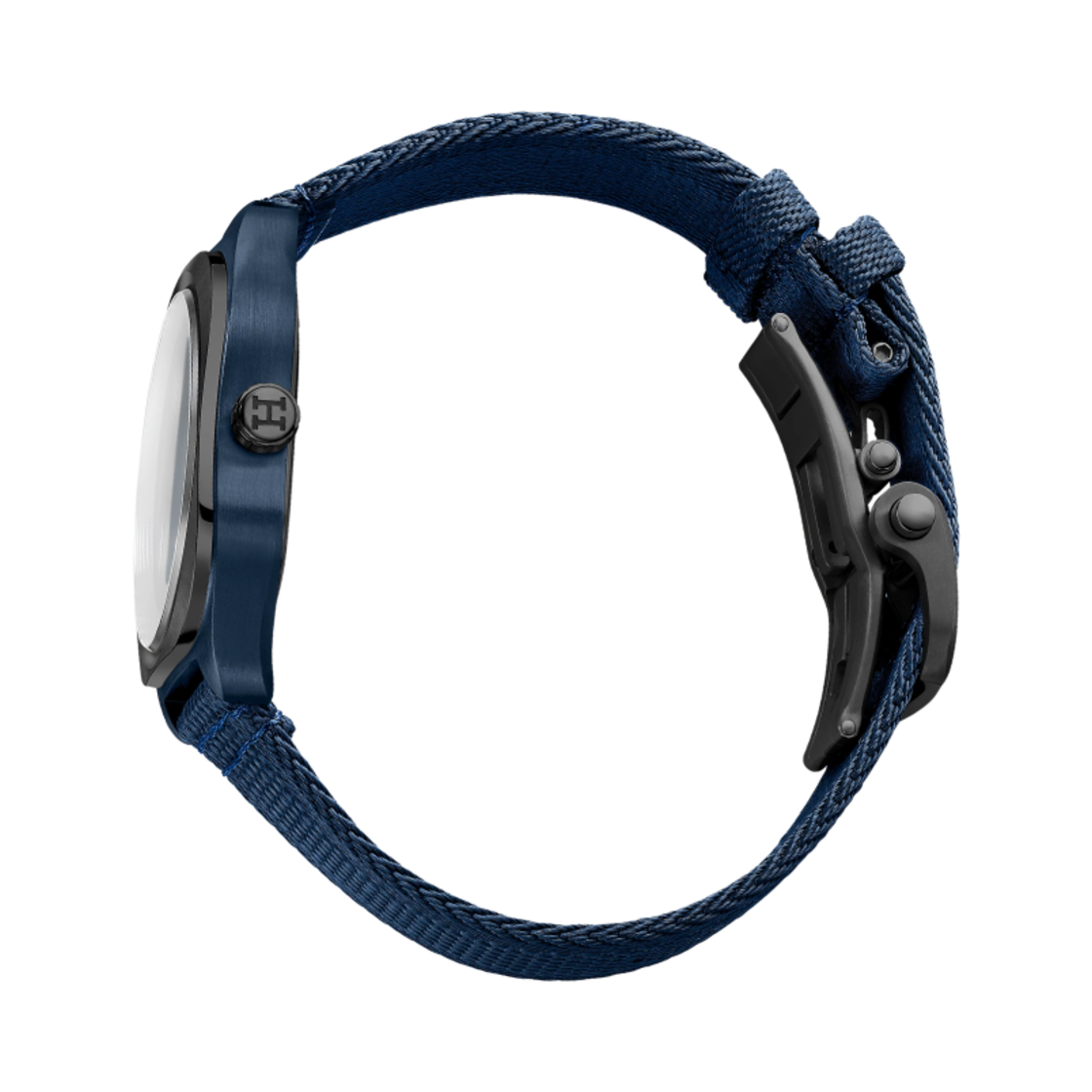 Hermes H08 Watch Extra Large Bleu Marine Fabric Strap & Bleu PVD Coated Titanium Back Coated with Black DLC