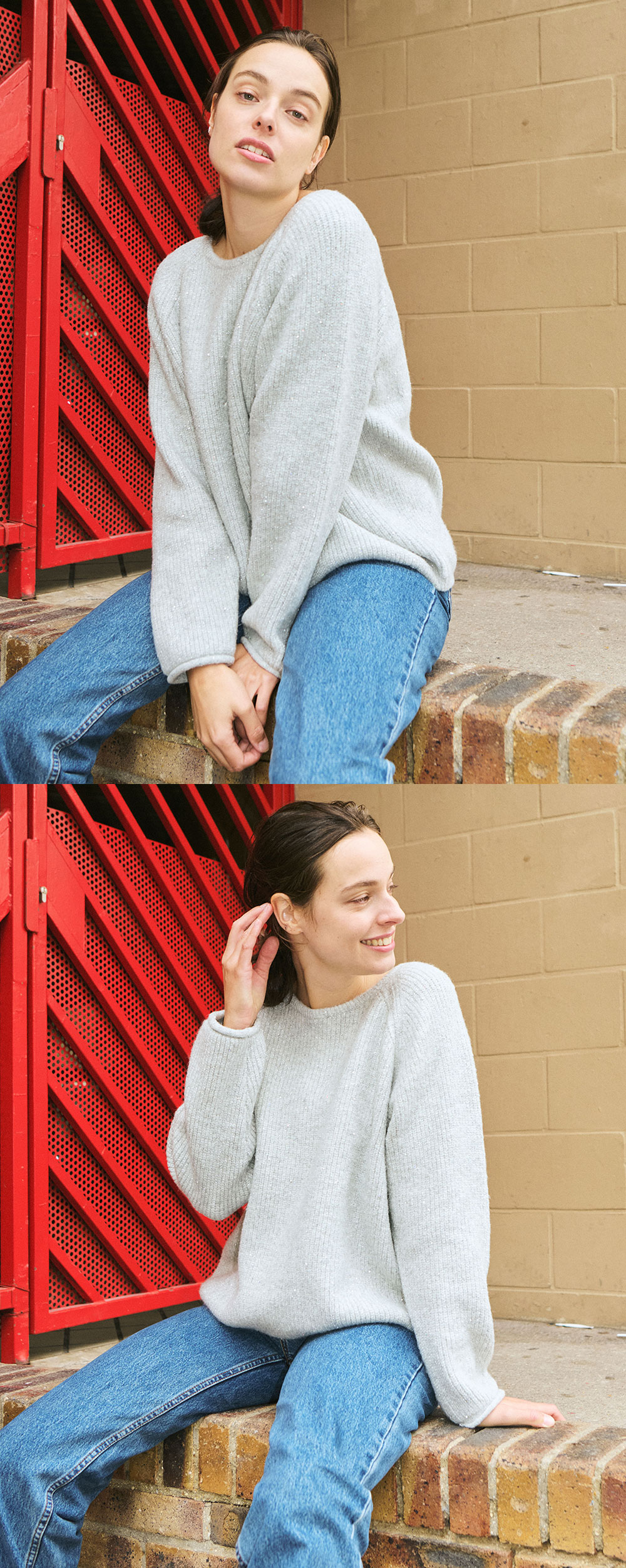 -다가오는 홀리데이 윈터시즌을 맞아 제작된 글리터 니트. -1합 14수의 원사로 2합 7게이지 하찌조직으로 편직. -일반 누비 스티치가 아닌 하트 모양 따라 '자수' 누비 스티치 진행. -울 혼방 헤어리한 원사에 메탈과 스팡클을 연사한 펜시얀. -몸판과 소매끝에 1*1 리브조직 디테일. -하찌조직은 리브조직 보다 두께감이 있어 보온성이 좋음. -보통의 리브 조직보다 수축률이 적고, 니트 조직중 가장 볼률감이 있으며 고급스러운 조직. -FREE사이즈. -디테일컷이 실제컬러와 유사합니다.