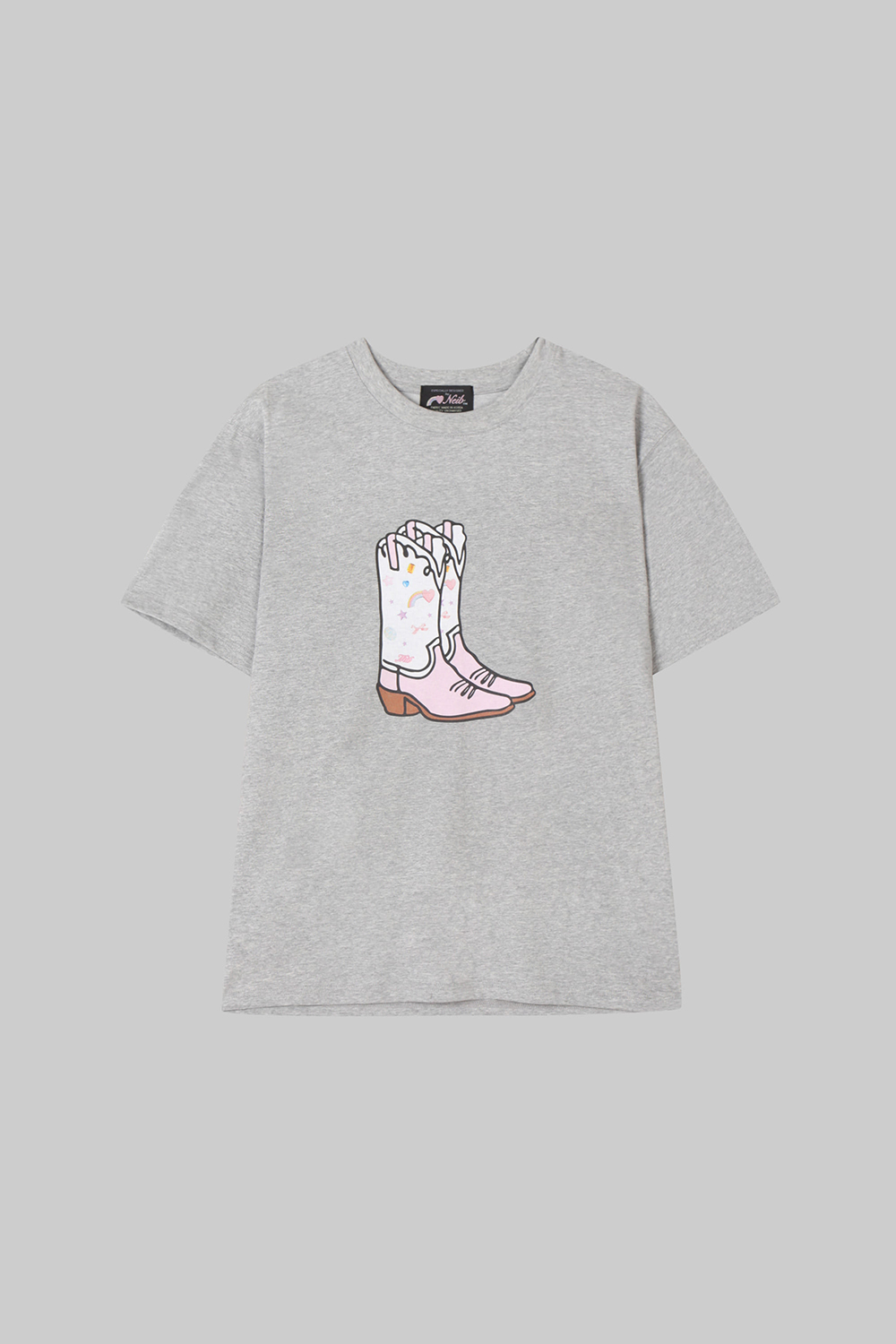네이비 부츠 티셔츠 멜란지그레이