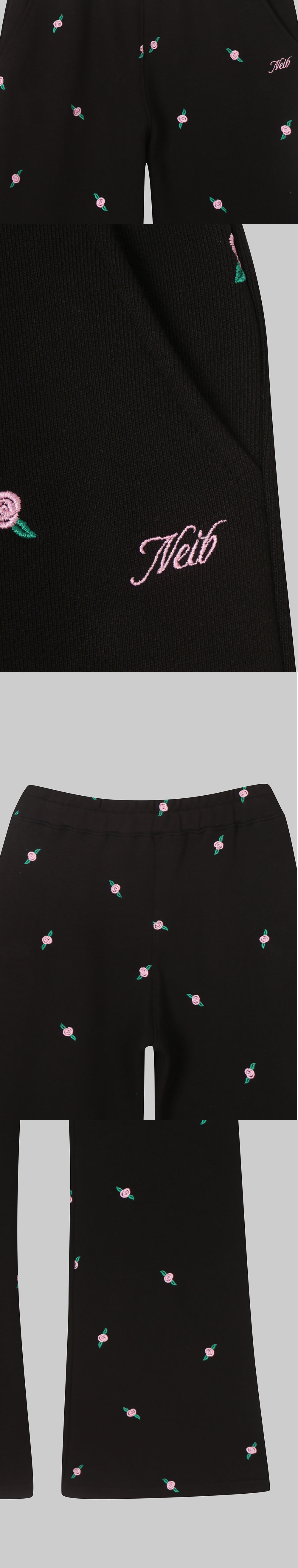 -오직 '네이비'에서만 만나보실 수 있는 자체 개발 자수 스웻팬츠. -Neib네이비의 시그니처 로즈 자수 패브릭 생산. -탄탄한 바이오워싱 코튼(트레이닝 져지) 소재 사용.(얇지않음) -무난한 블랙 베이스 컬러에 어울리는 무드의 자수 컬러. -Neib로고 자수. -허리 스트링 없음,뒤포켓 없음. -슬림해보이는 레그라인을 돋보이도록 부츠컷 디자인. -루즈한 실루엣으로 총장 102cm. -FREE사이즈. -디테일컷이 실제컬러와 유사합니다.AE13
