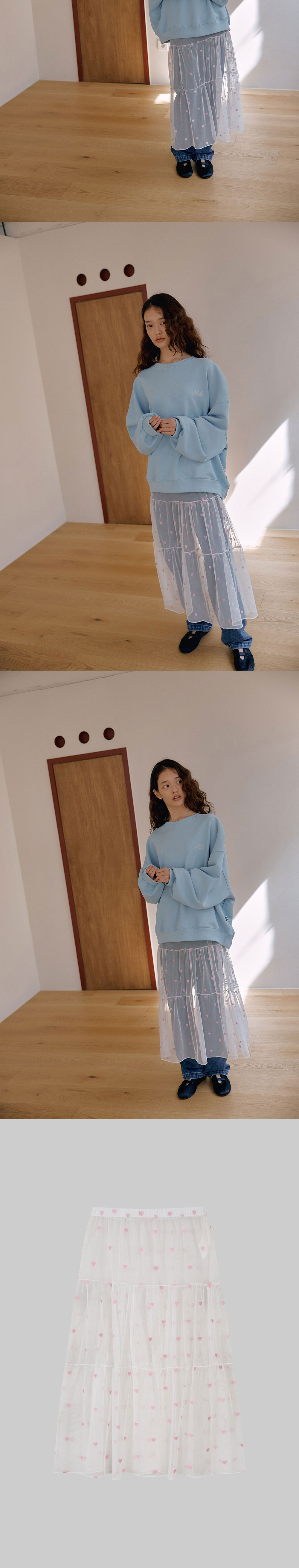 -다양한 하의들과 함께 매칭가능한 레이어드 스커트. -Neib네이비에서 직접 자수 작업한 패브릭 단독 생산. -Exclusive제품. -캉캉 디자인으로 부담스럽지 않은 볼륨의 레이어드 스커트. -화이트 블랙 심플한 두가지 컬러구성에 핑크컬러의 하트 자수. -데님과 함께 착용하기 좋은 여유로운 밴딩 부분으로 사이즈 관계 없이 착용 가능한 밴딩 스커트. -FREE사이즈. -디테일컷이 실제컬러와 유사합니다.