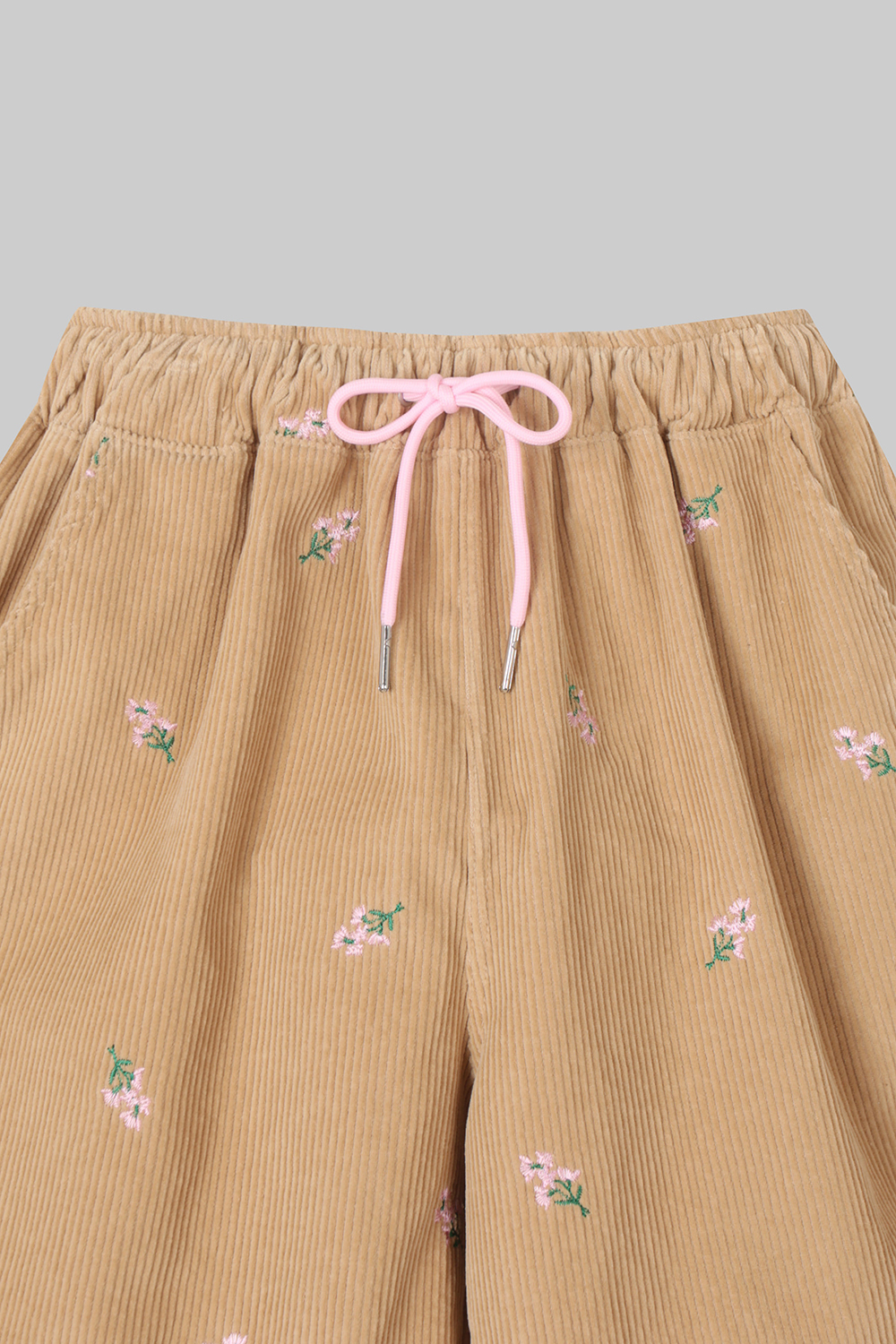-코듀로이 팬츠의 쇼츠 Ver. -볼륨이 느껴지는 굵은 골의 코듀로이. -네이비만의 시그니처 플로럴 자수가 들어간 패브릭 생산. -베이직한 베이지 원컬러. -FW의 따뜻함과 편안함을 텍스쳐로 표현. -밴딩 부분에서 사용한 스트링 팁 네이비 로고 각인. -코듀로이 패브릭 특성상 포켓 부분 두꺼워지지 않도록 포켓 속 일반 코튼과 믹스하여 사용. -와이드한 기장감이 포인트지만 밴딩 부분의 연출에 따라 기장감이 달라질 수 있음. -Neib 시그니처 로고 자수. -FREE사이즈. -디테일컷이 실제컬러와 유사합니다.