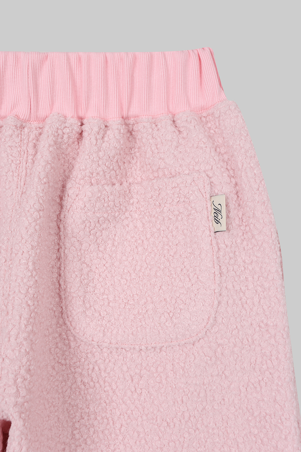 -볼륨이 느껴지는 시어링 소재 사용. -겉면 시어링 안쪽 후리스 소재의 패브릭으로 착용시 보온성은 물론 소프트한 터치감으로 편안한 착용감. -심플한 컬러웨이 구성으로 다양한 상의와 매치 가능. -WINTER에 착용 가능한 보온성이 뛰어난 팬츠. -밴딩 부분에서 사용한 아일렛,팁 부자재 디테일 컬러 코팅 진행.(핑크) -패브릭 특성상 포켓 부분 두꺼워지지 않도록 단면 후리스와 믹스하여 사용. -와이드한 기장감이 포인트지만 밴딩 부분의 연출에 따라 기장감이 달라질 수 있음. -Neib 시그니처 로고 자수. -FREE사이즈. -디테일컷이 실제컬러와 유사합니다.