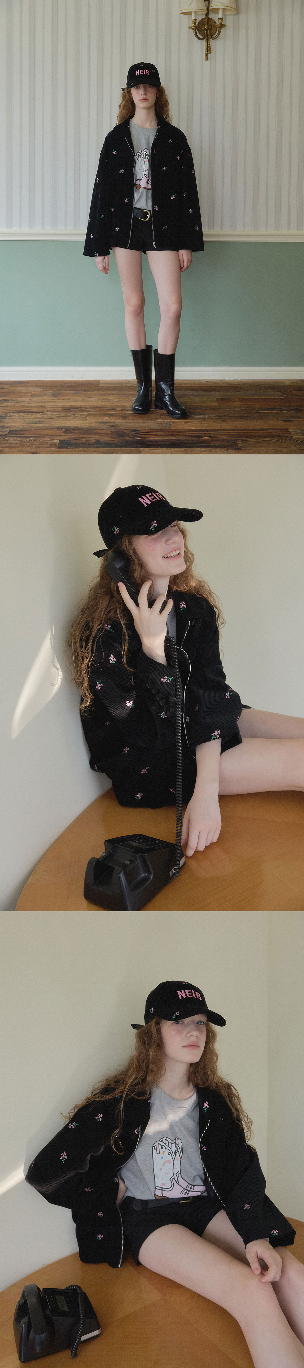네이비 플로럴 엠브로이더리 볼캡 블랙