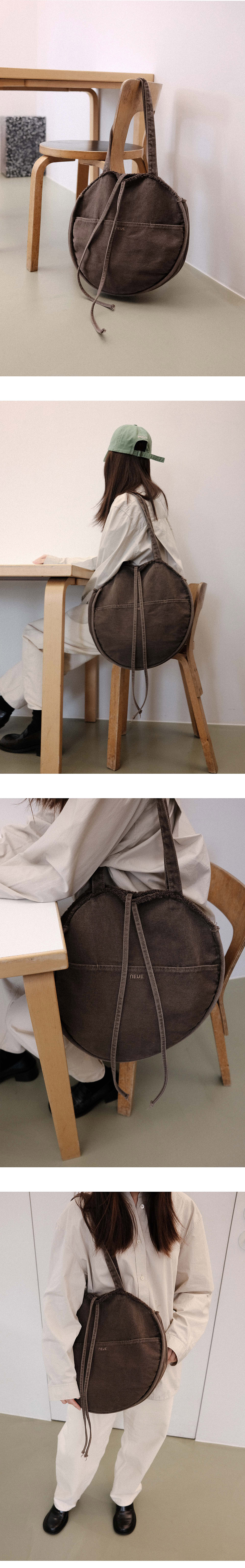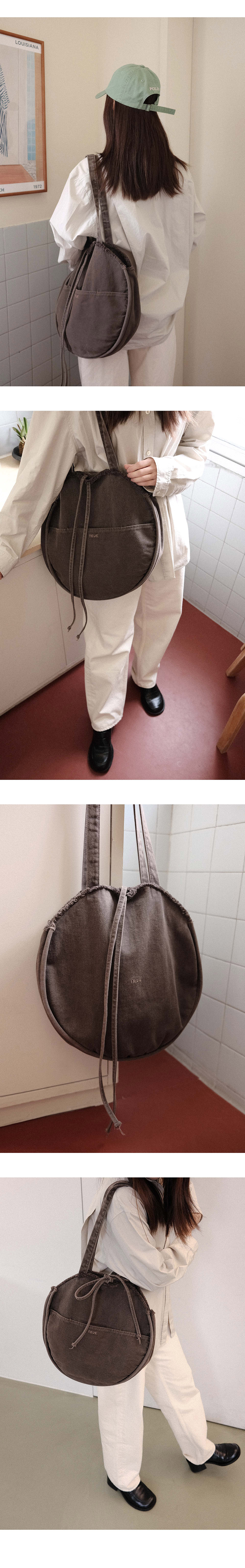 - 가방의 형태가 유지되도록 해리마감된 원형백 - 밀도있고 탄탄한 7수 Nonspan 데님원단 - 워싱디테일과 빈티지한 컬러의 가먼트다잉 - 가방 전면의 반달 포켓과 내부 포켓 - 2가지 스타일링이 가능한 양면 디자인 - 데님원단의 특징을 살린 프린지 디테일 - 스냅과 리본으로의 여밈이 가능한 가방 입구 * 가먼트 다잉의 특성상 비와 땀에 의한 이염 우려가 있으므로 밝은 컬러 의류 착용시 유의하시기 바랍니다. * 가방의 일부분만 세탁시 얼룩이 생기오니 반드시 전체 단독 세탁 하시기 바랍니다. * 수차례 워싱을 거친 제품으로 반드시 기입된 사이즈를 체크해주세요. * 가먼트 다잉은 후염 기법으로 봉재선에 따라 자연스럽게 염색이 되어 얼룩한 느낌이 날 수 있으나 이는 불량이 아닙니다.