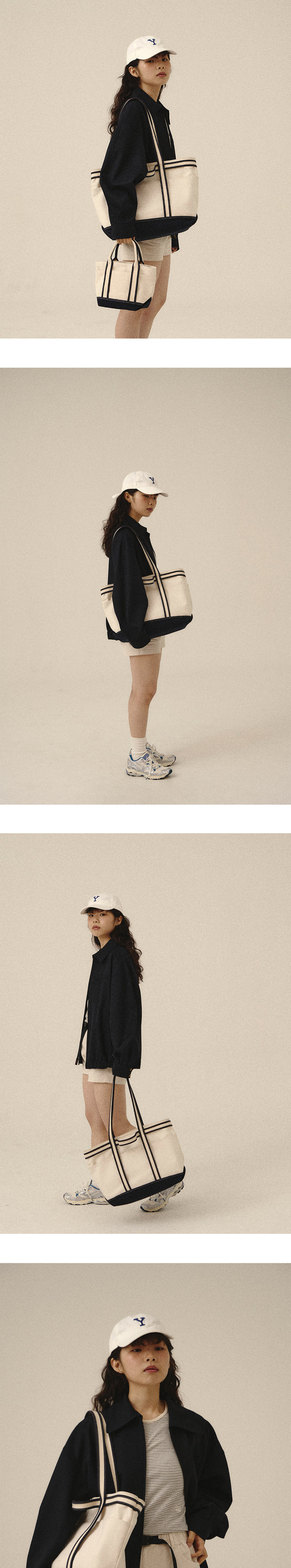 * 현재 가방의 여밈은 개고리 방식으로 변경되어 벌어짐을 방지하도록 개선되었으며, 내부 안감 주머니 또한 네이비 원단으로 업데이트되었습니다.