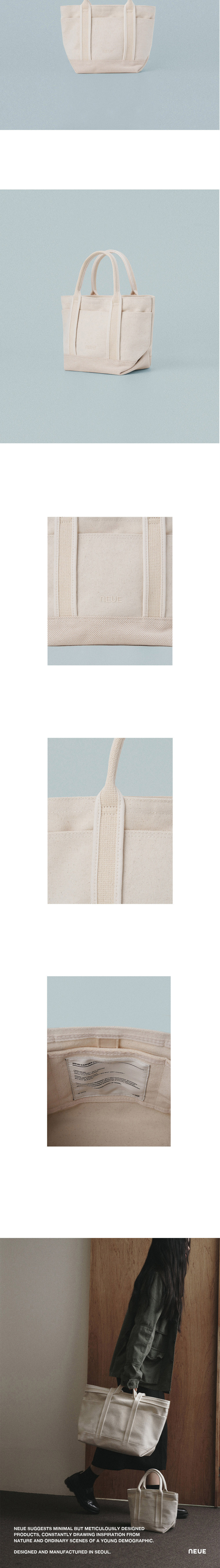 - 자연스러운 워싱질감과 탄탄한 내구성의 캔버스 원단 - 바이어스로 포인트를 준 손잡이 디테일 - 외부 포켓1 내부포켓3 - 가방의 여밈이 가능한 똑딱이 스냅 - neue 로고 자수
