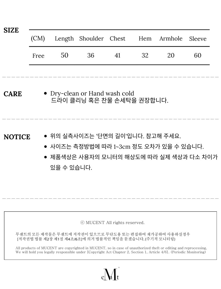 ┃Detail • 전면부 무센트 시그니처 로고 자수 • 브이넥 라인 디자인 • 우수한 신축성과 편안한 착용감 • 부담스럽지 않은 세미 크롭 기장 • 슬림한 아웃핏 연출 • 다양한 하의와 매치 가능한 베이직한 디자인 ┃Material : Polyester 100% ┃Care : Dry cleaning - 무센트는 말기의 행성인 이 지구에서 지속 가능한 옷들을 고민합니다. 우리는 신념을 소비하는 미닝아웃을 지지합니다.