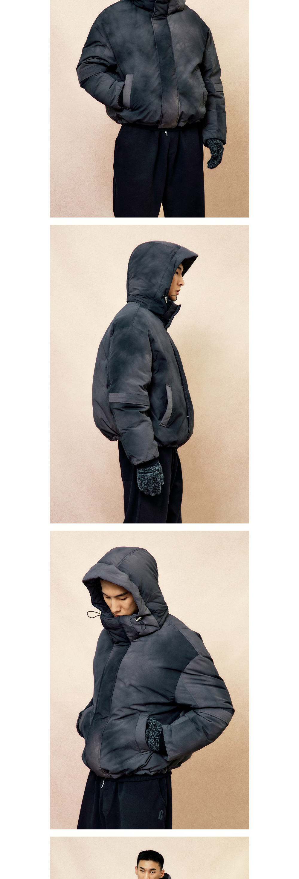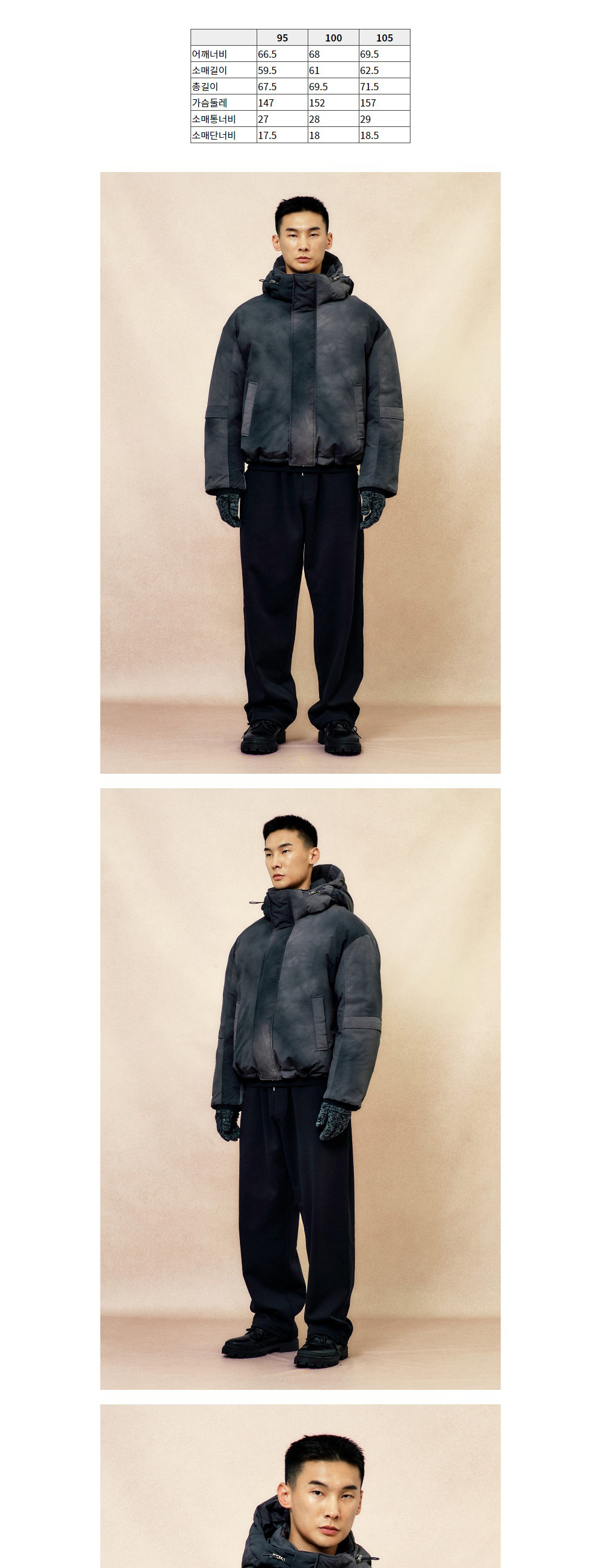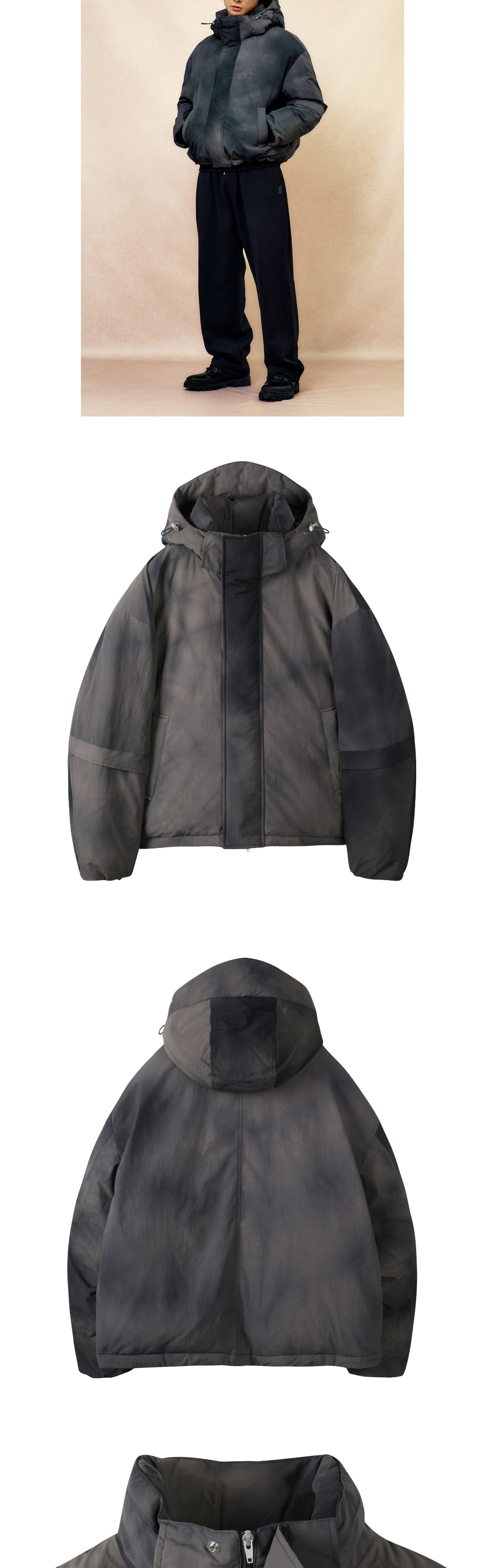- 특수 염색 기법의 불규칙 다잉 화섬 구스 다운 점퍼. - 트렌디한 숏 기장에 드랍 숄더의 푸퍼 실루엣. - 지퍼로 연결된 탈부착 후드와 옆날개를 벨크로 마감으로 깔끔하게 숨길 수 있어 세련된 외관. - 2-WAY YKK지퍼와 이중단작 디자인으로 테크니컬하면서 깔끔한 디자인 . - 후드와 밑단 아일렛, 스트링 스토퍼, 스냅 등 고급 부자재를 사용. - 소매 절개 디자인 디테일과 안쪽 RIB 이중 소매 구조로 방한 효과 극대화. - 유로피안 프리미엄 구스 다운 *프라우덴 80/20 소재를 사용. - 필파워 700-650 FP의 우수한 구스 다운 복원력. *모델 : 182cm/70kg 사이즈 100착용