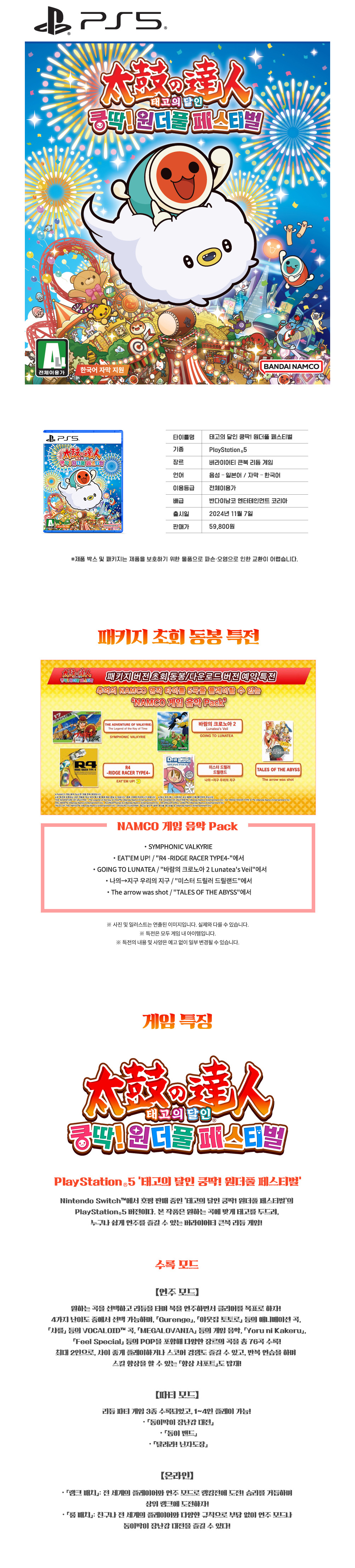 플레이스테이션 5 태고의 달인 쿵딱! 원더풀 페스티벌