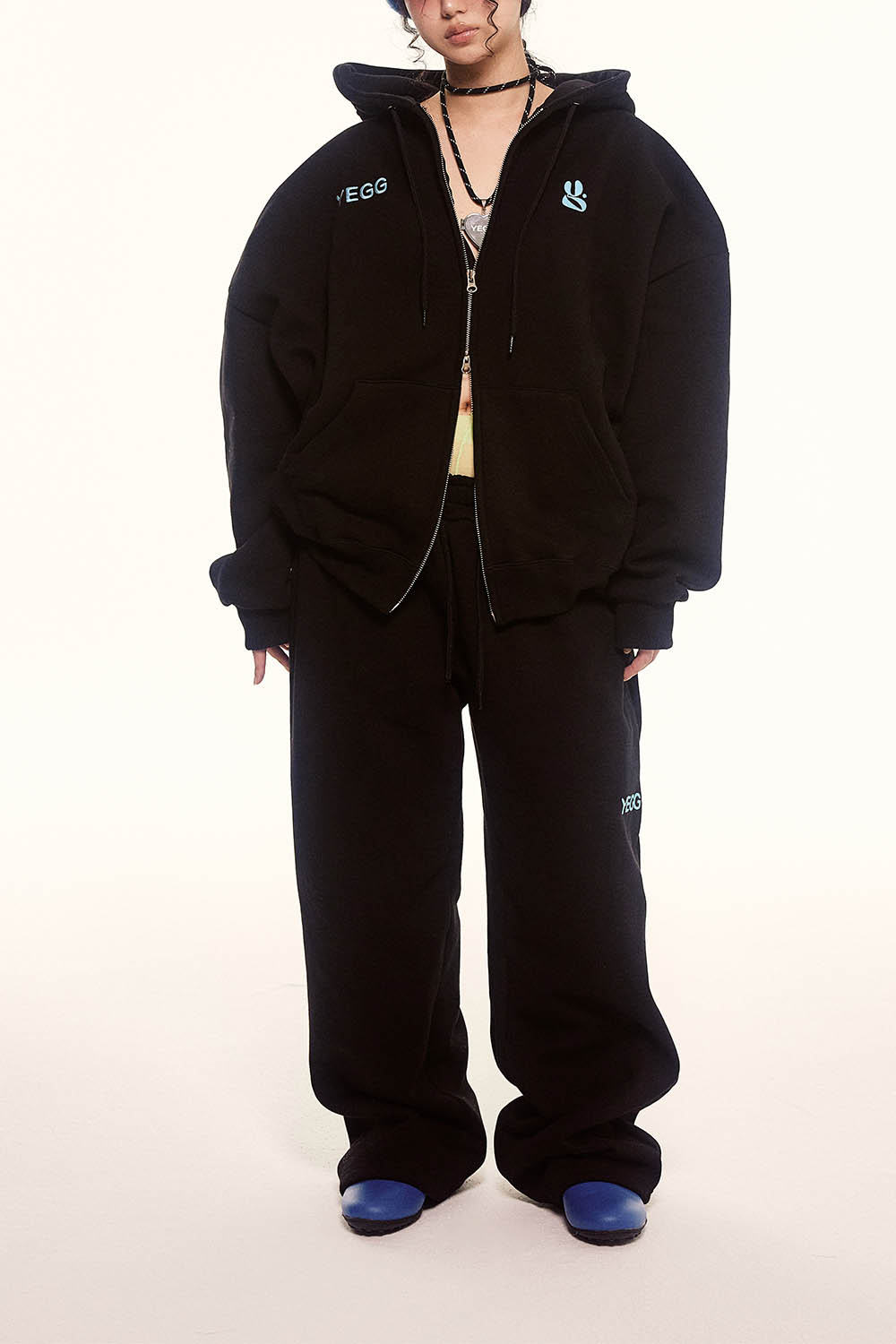 YEGG girls 예그걸들에게 날개를 달아줄 예그의 새로운 오버핏 스웻 디자인을 소개해드립니다. 팬츠 엉덩이에는 날개자수 포인트되어 있습니다. 기모안감이며, 세탁 시 원단 수축을 방지하기위해 덤블텐타가공을 하였습니다.