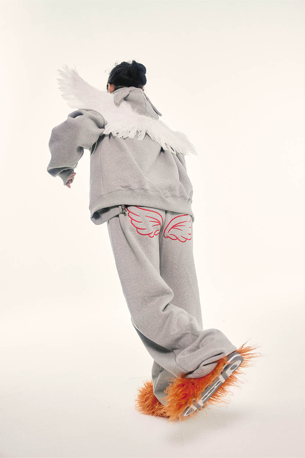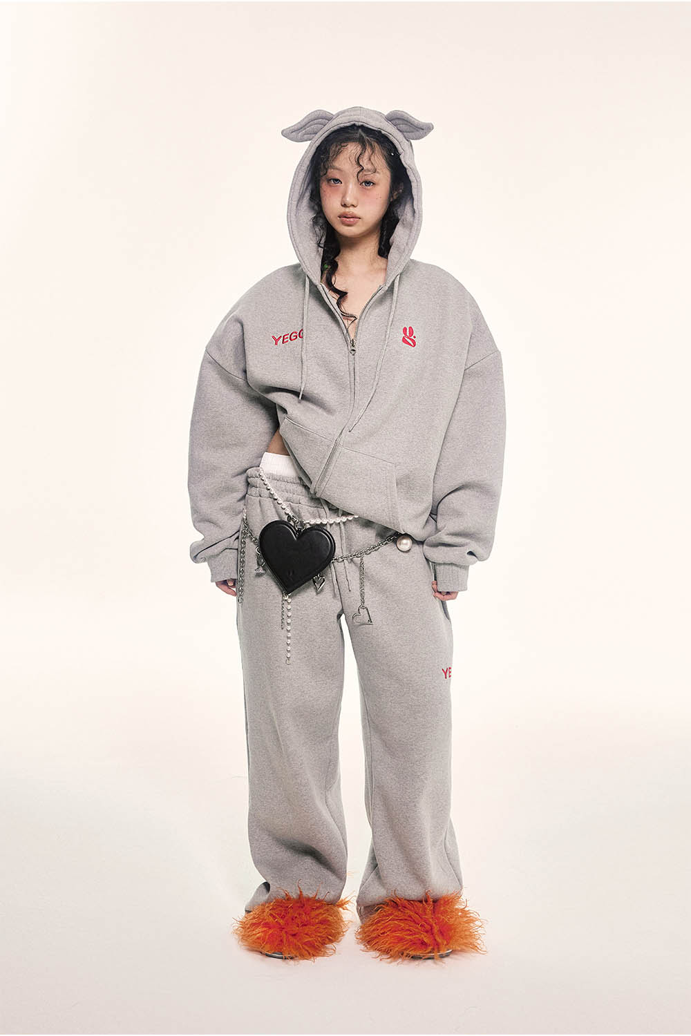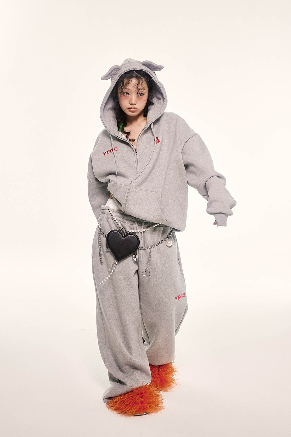 YEGG girls 예그걸들에게 날개를 달아줄 예그의 새로운 오버핏 스웻 디자인을 소개해드립니다. 팬츠 엉덩이에는 날개자수 포인트되어 있습니다. 기모안감이며, 세탁 시 원단 수축을 방지하기위해 덤블텐타가공을 하였습니다.