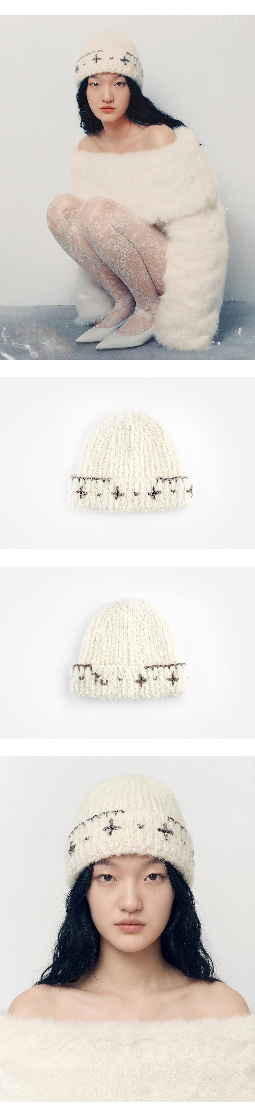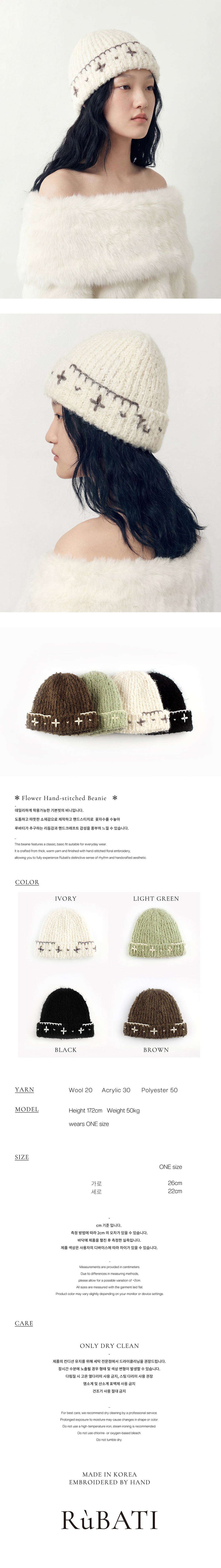 루바티 꽃자수 핸드스티치 비니 아이보리