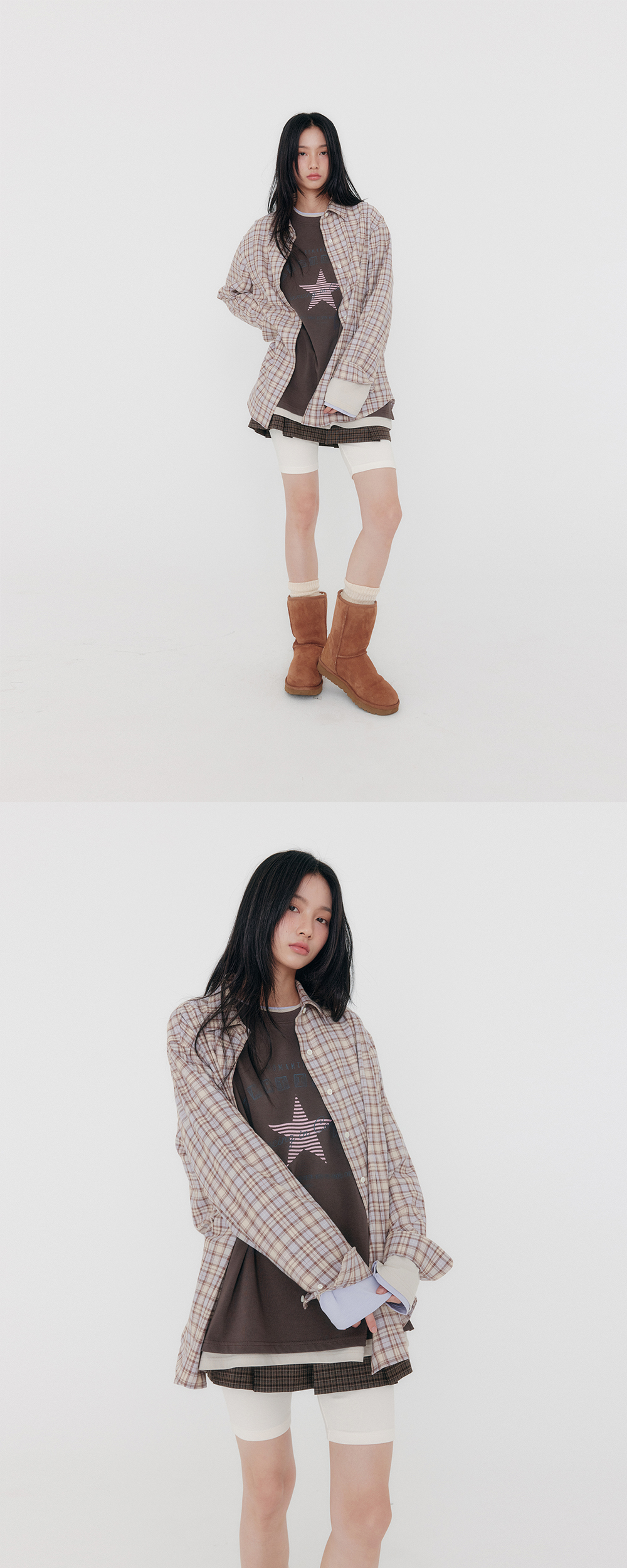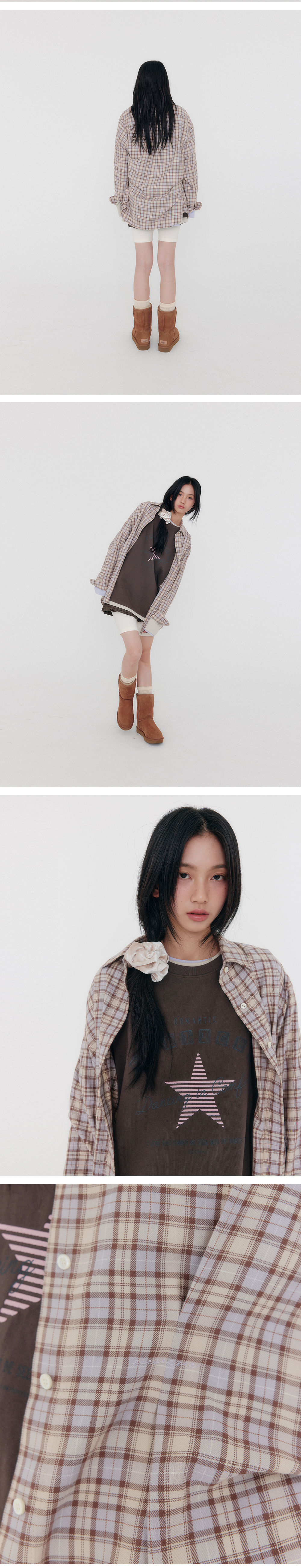 파스텔톤 오버사이즈 체크셔츠 - 부드러운 코튼혼방 소재로 부드럽고 편안한 착용감 - 어깨, 옆선 턱 디테일 - 앞판 다트주름으로 입체감있는 실루엣 - 앞판 매칭컬러 로고 자수 - 천연자개단추 비침 없음 / 신축성 보통 / 두께감 보통