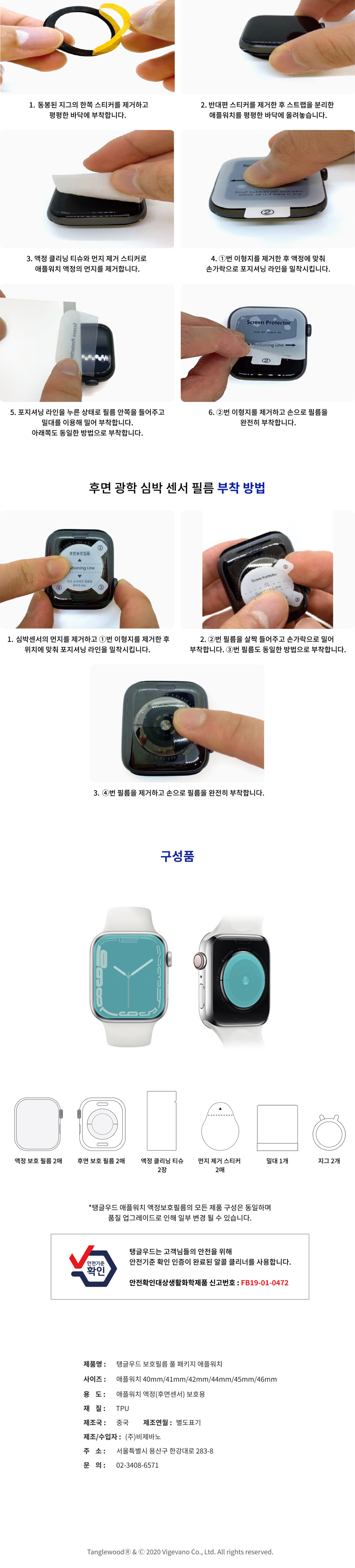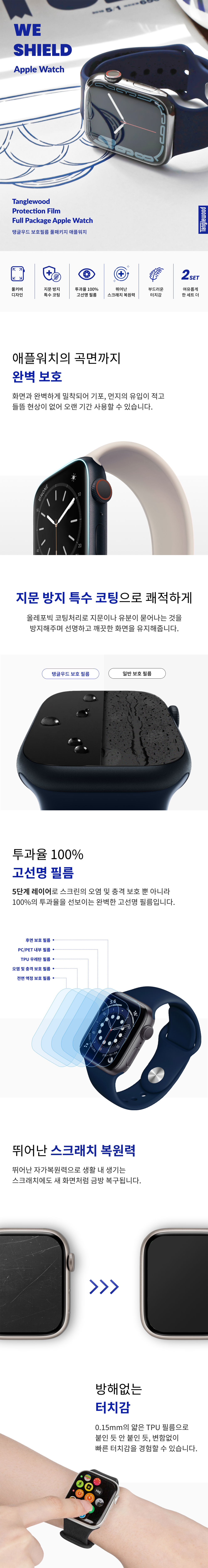 탱글우드 보호필름 풀 패키지 애플워치 44/45mm 2세트