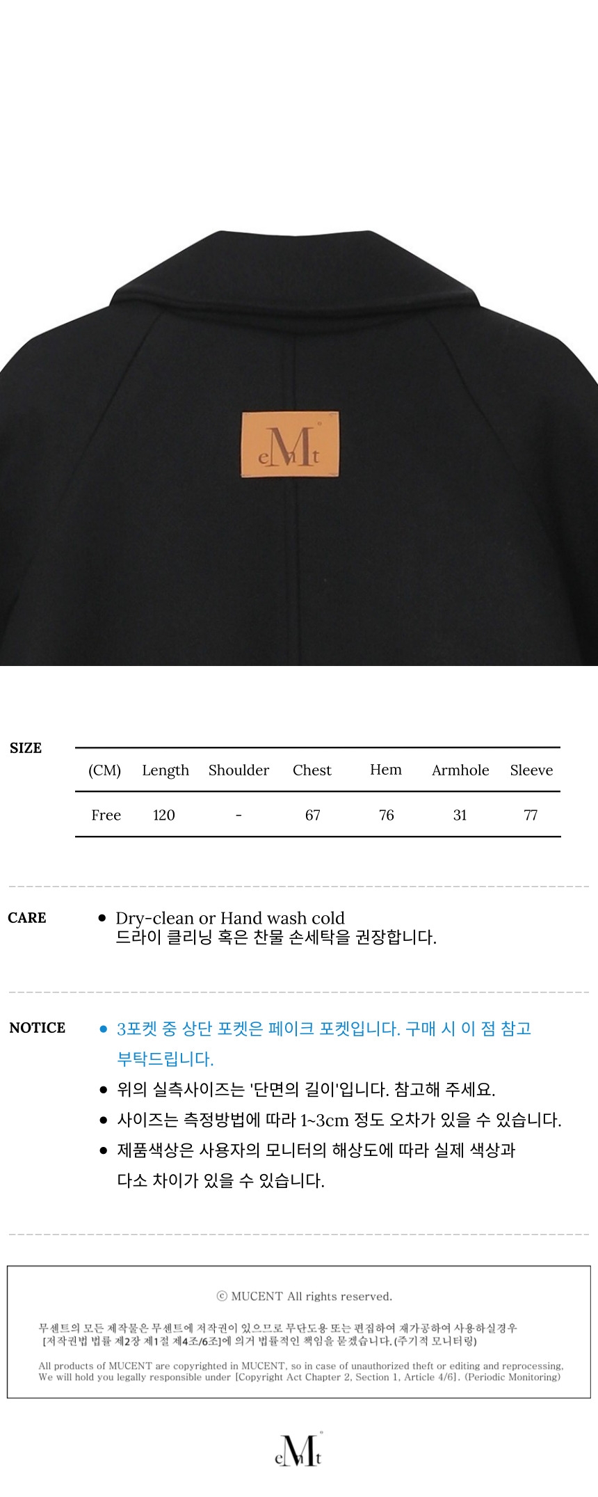 ┃Detail • 래글런 디자인의 소매 • 소매 스트랩과 단추 디테일 • 히든 플라켓으로 미니멀한 무드 • 후면에 브라운 레더 패치 포인트 • 3 포켓 디자인 포인트 • 활동성에 용이한 뒷면 트임 • 누빔 안감으로 우수한 보온성 (한겨울에도 착용 가능) • 남녀공용으로 착용 가능한 사이즈 ┃Material : Polyester 100% ┃Care : Dry cleaning - 무센트는 말기의 행성인 이 지구에서 지속 가능한 옷들을 고민합니다. 우리는 신념을 소비하는 미닝아웃을 지지합니다.