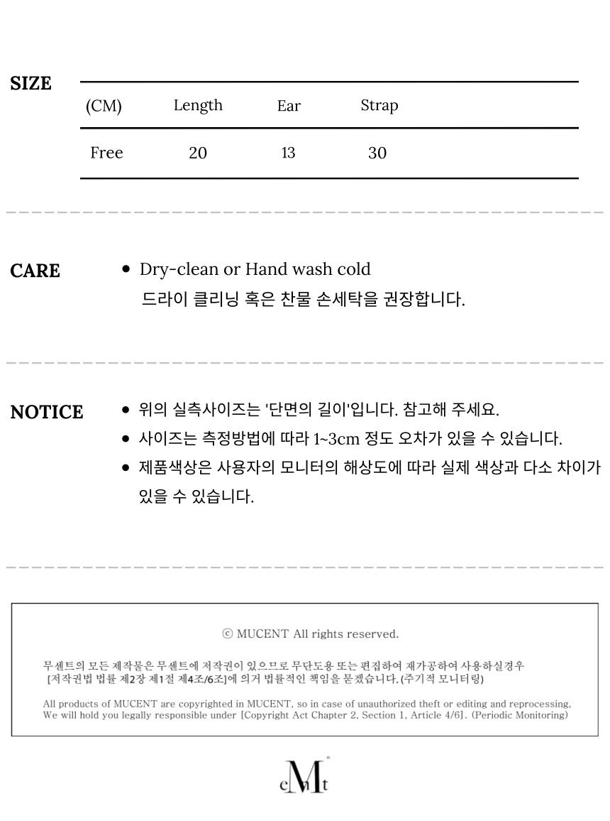 ┃Detail • 내측 부드러운 퍼 원단을 사용하여 보온성 우수 • 양측 무센트 자수 로고 포인트 • 귀 전체를 감싸 포근함 극대화 • 공간 차지가 적은 접이식 귀마개 • 피부에 부담 없는 부드러운 안감 ┃Material : Polyester 100% ┃Care : Dry cleaning - 무센트는 말기의 행성인 이 지구에서 지속 가능한 옷들을 고민합니다. 우리는 신념을 소비하는 미닝아웃을 지지합니다.
