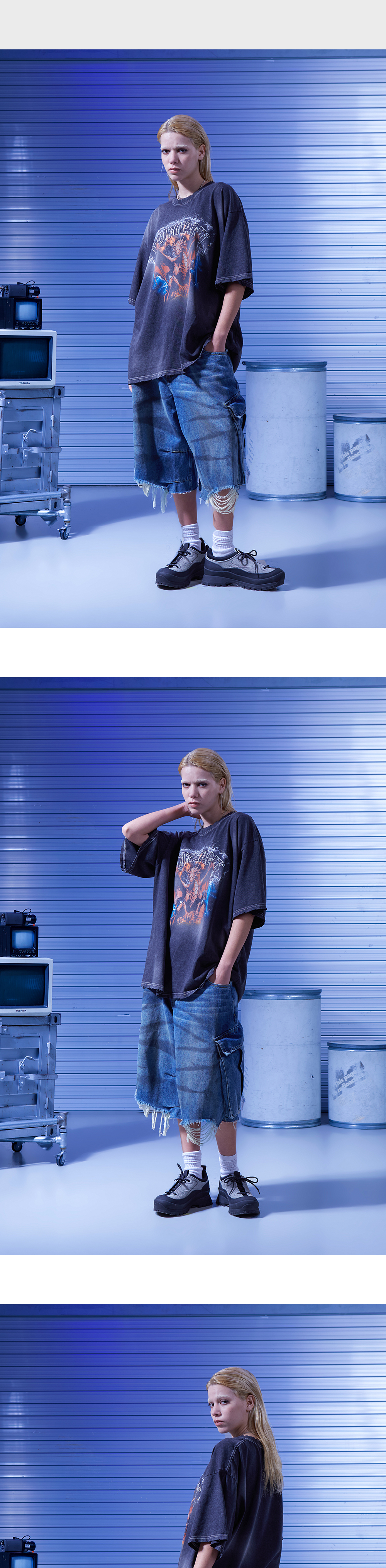 도미넌트 더티 와이드 버뮤다 팬츠 데님 블루