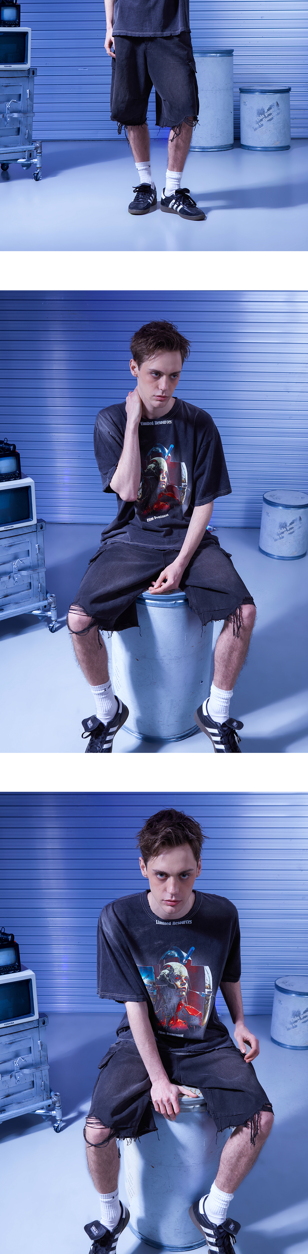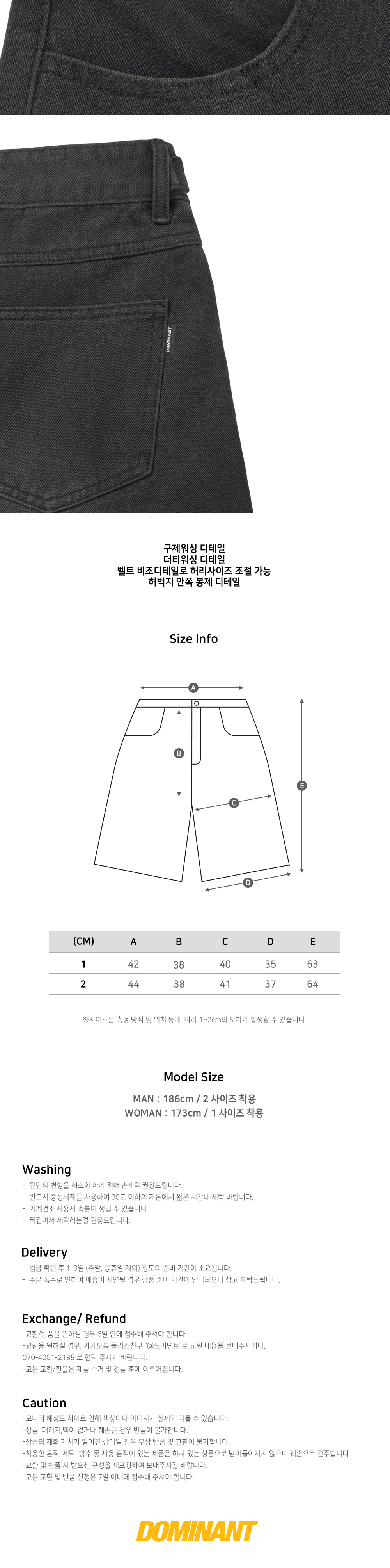 도미넌트 더티 와이드 버뮤다 팬츠 데님 블랙