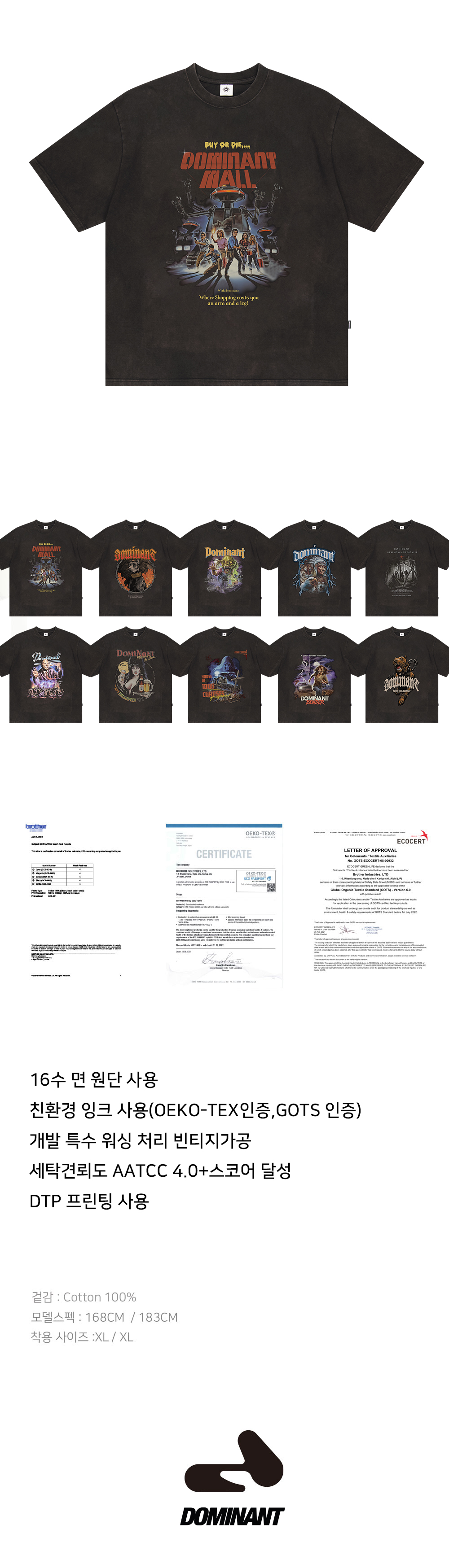 도미넌트 빈티지 워싱 디몰 티 블랙