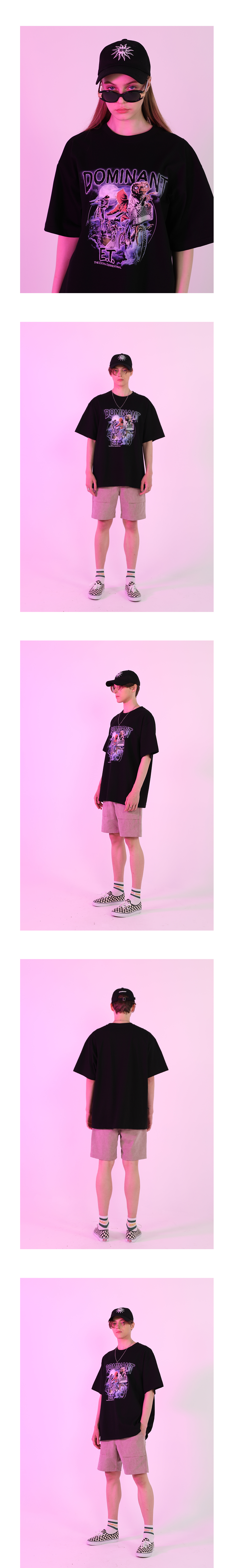 도미넌트 유니섹스 이티 프린팅 자수 오버핏 숏 슬리브 티