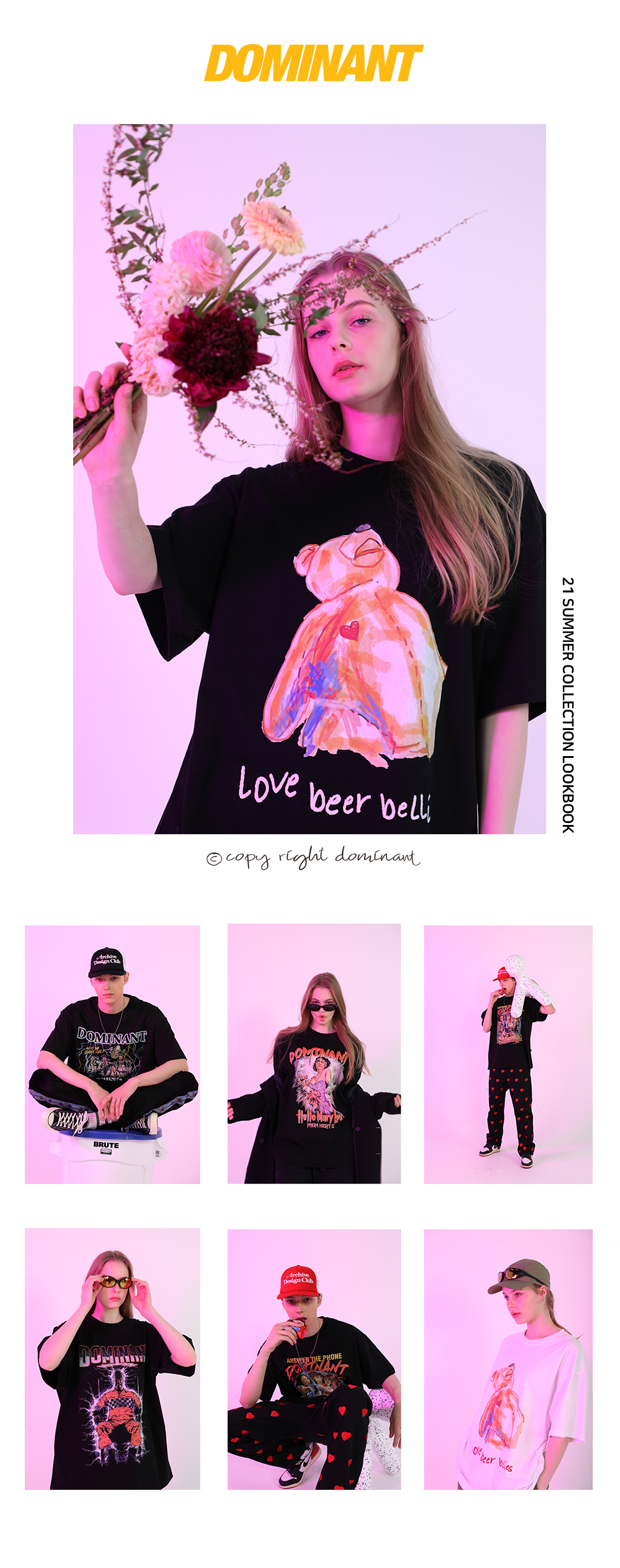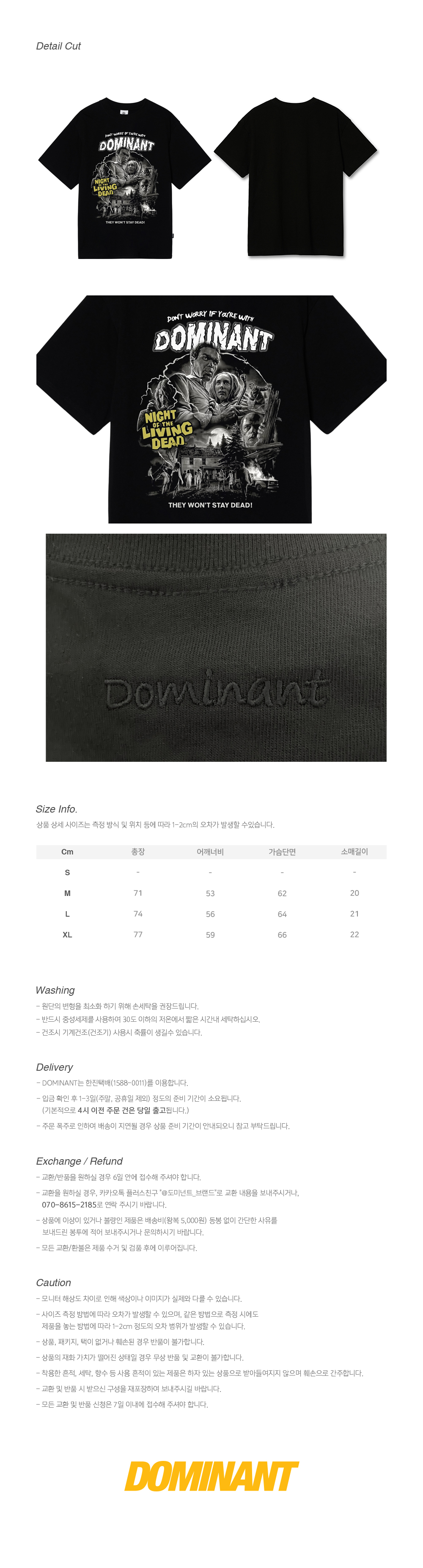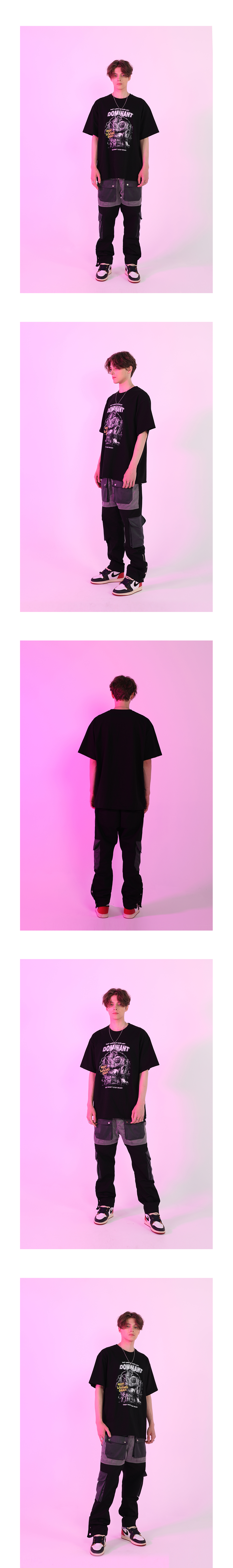 도미넌트 유니섹스 NLD 프린팅 자수 오버핏 숏 슬리브 티