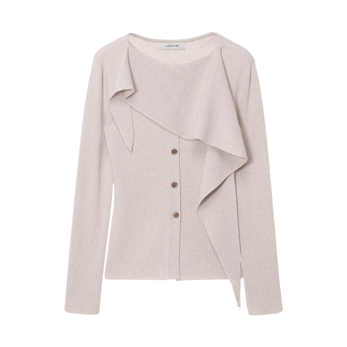 (W) Loeuvre Asymmetrical Neck Muffler Rib Knit Pullover Milky White