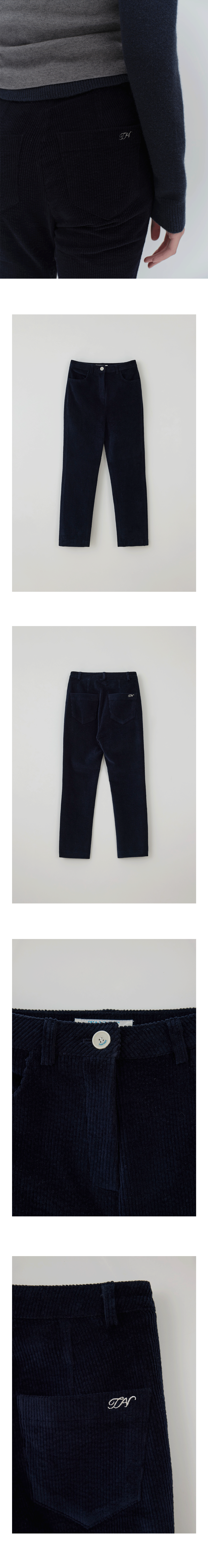 따뜻하고 부드러운 컬러의 피스타치오의 느낌을 담은 하이라이즈 슬림핏 코듀로이 팬츠입니다. 크롭한 9부 기장감으로 깔끔한 실루엣을 선보이며, 코튼과 스판이 함유되어 있어 부드럽고 편안한 착용감을 제공합니다. 적당한 골의 너비를 가진 코듀로이 소재로 늘어남을 방지하기 위해 허리 안쪽의 속단추로 안정된 핏을 느낄 수 있습니다. 크림과 네이비 두 가지로 구성되어 부드럽고 차분한 무드를 연출할 수 있으며, 뒷 포켓의 로고 자수 컬러로 포인트를 더했습니다.