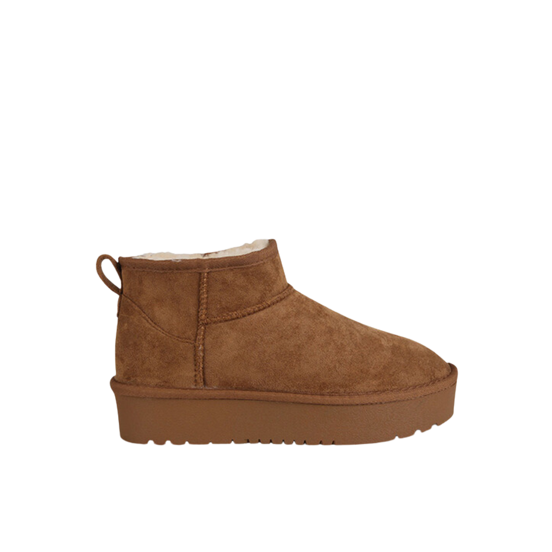 (W) Shoopen Cozy Suede Fur Platform Short Boots Camel