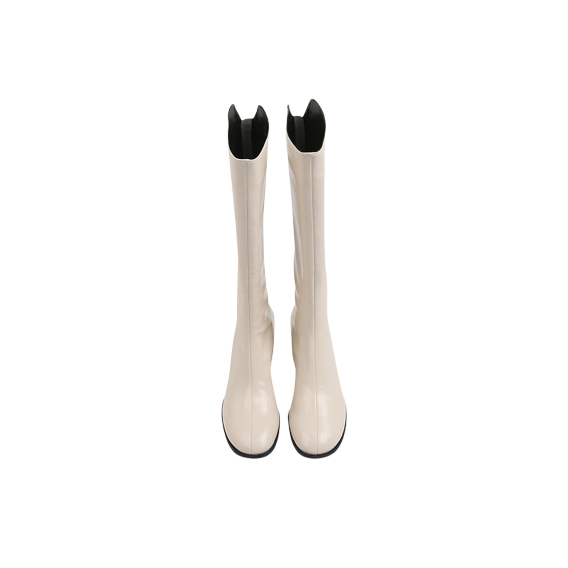 (W) Shoopen x Jju Unni Slim Fit Leather Long Boots 4.0 Ivory - Standard