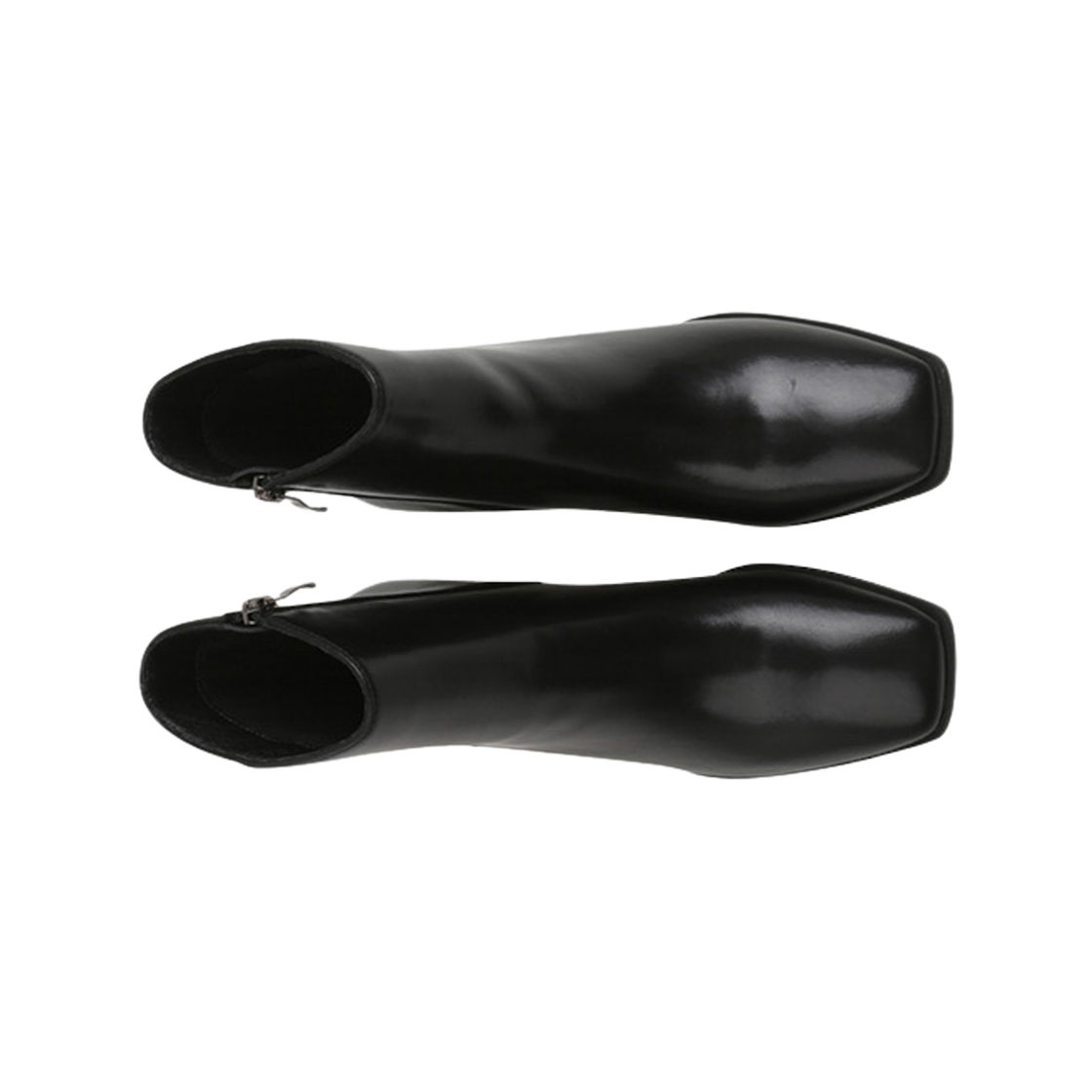 (W) Shoopen Cowhide Square Toe Ankle Boots 5.0 Black