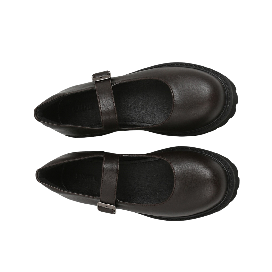 (W) Shoopen Buckle Mary Jane Chunky Loafers 4.0 Brown