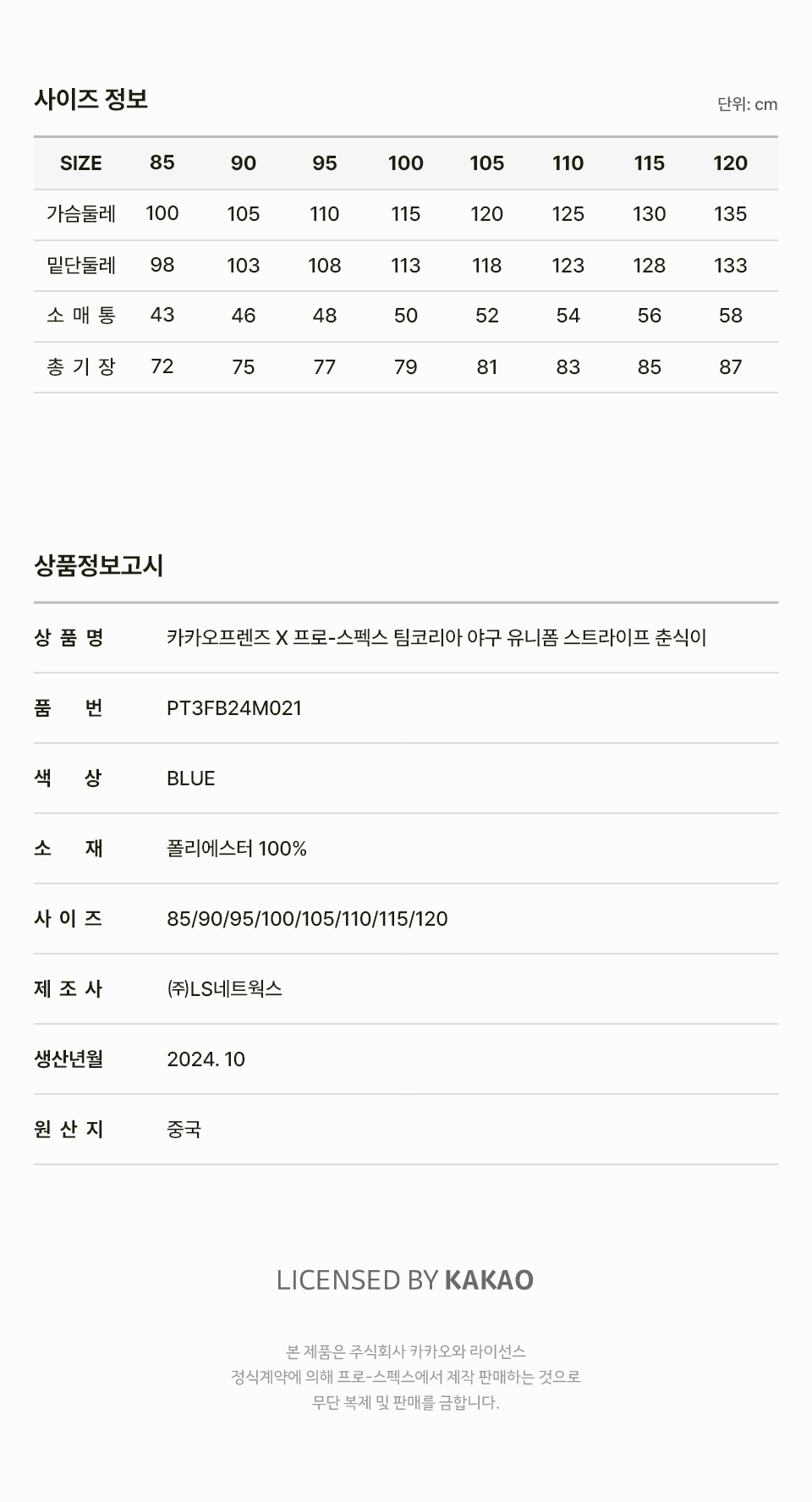 프로-스펙스 X 카카오프렌즈 팀 코리아 야구 유니폼 스트라이프