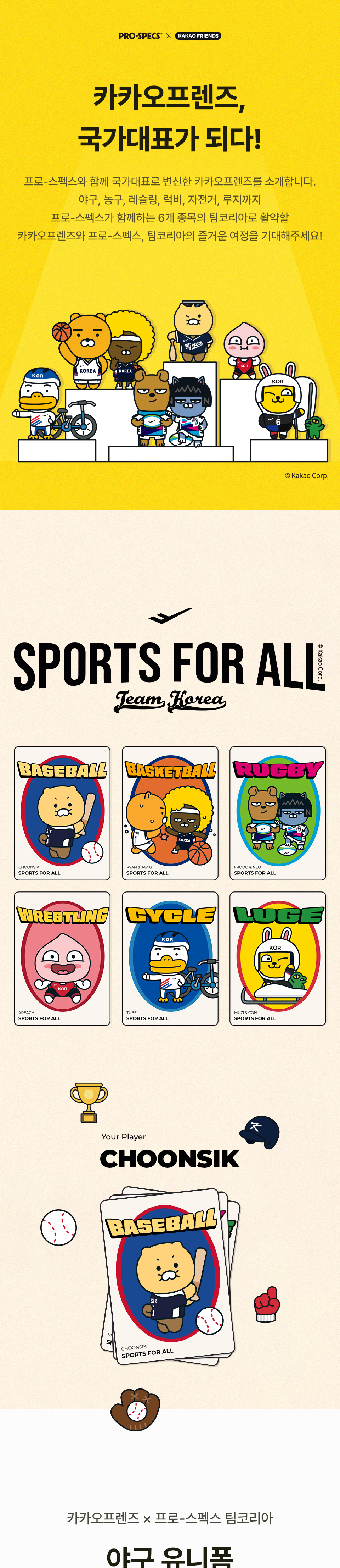 프로-스펙스 X 카카오프렌즈 팀 코리아 야구 유니폼
