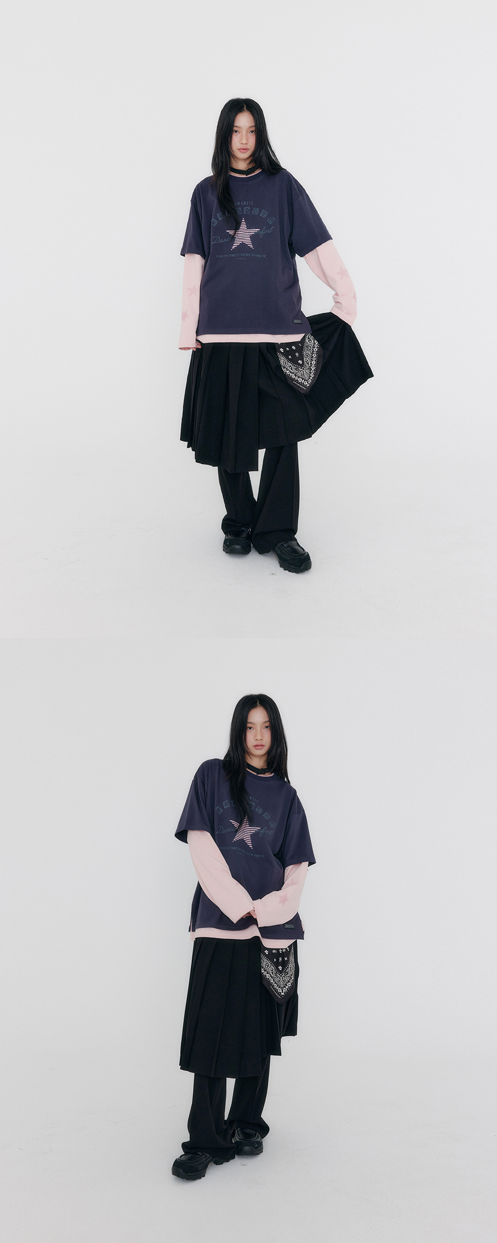 미디 기장의 플리츠 스커트 - 탄탄한 울블랜드 고급 소재 - 투웨이 연출가능한 버튼 디테일 - 언발란스한 기장의 랩 디자인 - A라인 실루엣 - 사이즈 지퍼 여밈 - 벨트 루프 - 허리부분 매칭컬러 로고 자수 - 비스코스 혼방의 부드러운 안감 비침 없음 / 신축성 보통 / 두께감 보통 / 안감 있음