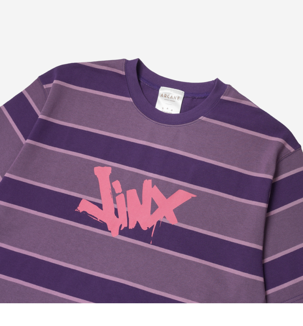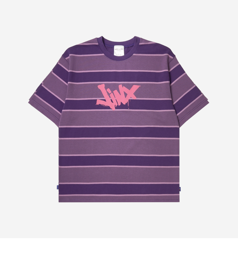 아이앱 스튜디오 x 아케인 징크스 스트라이프 티셔츠 퍼플 스트라이프 핑크