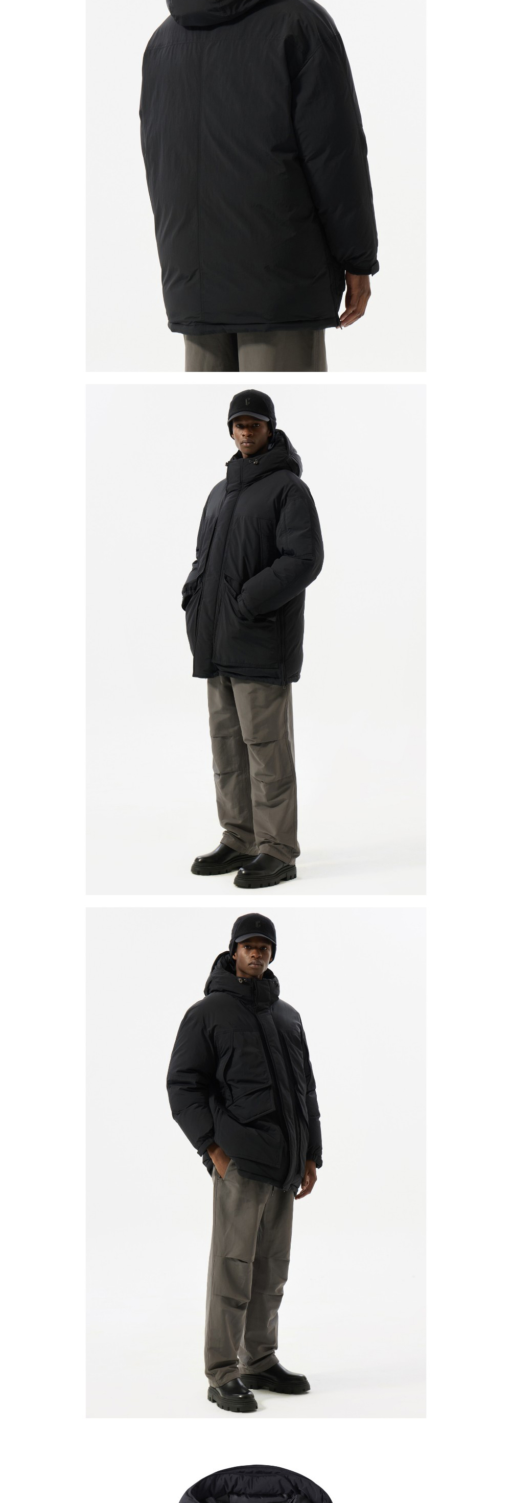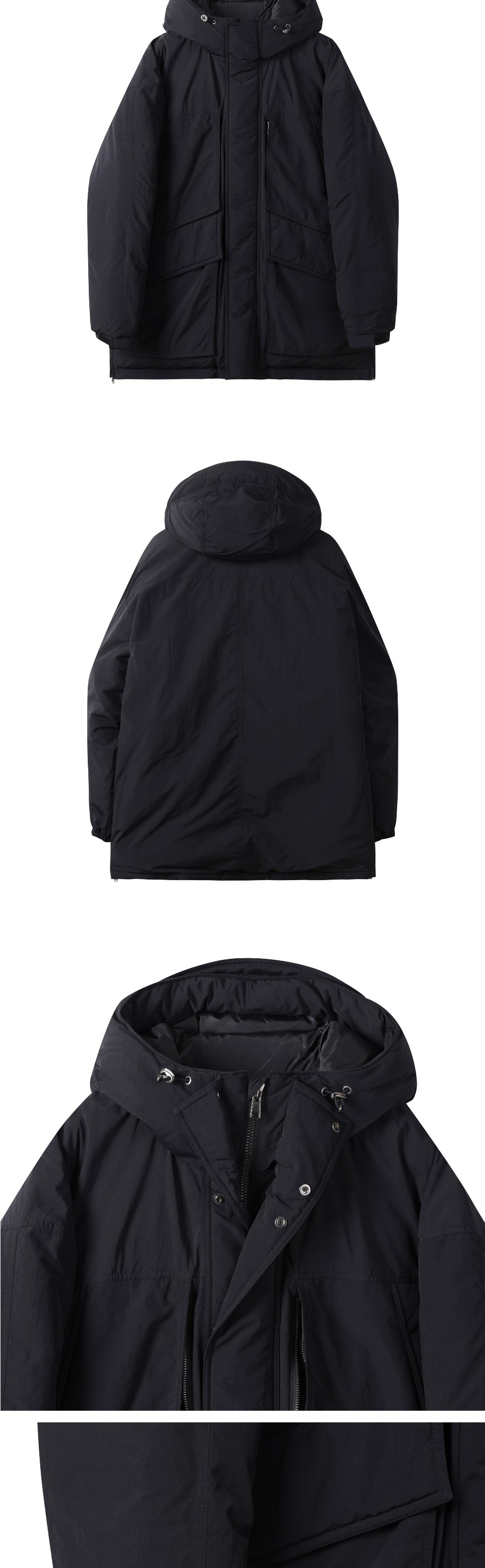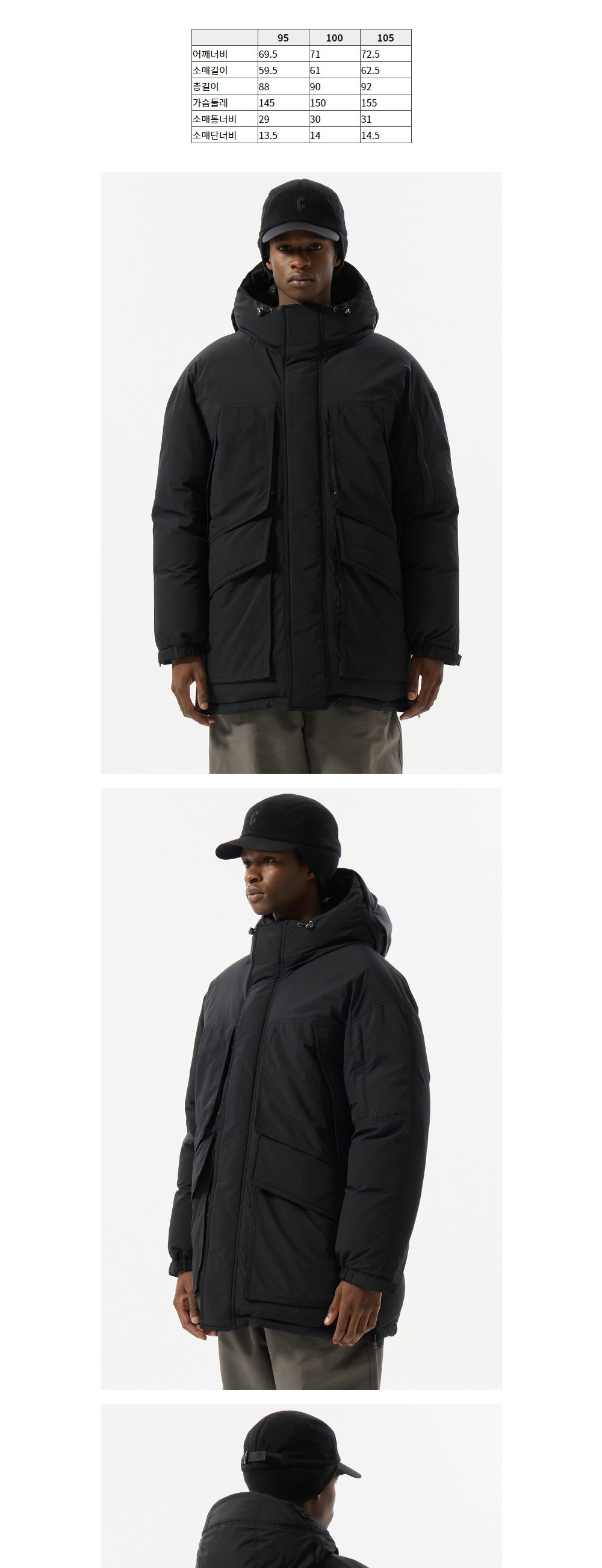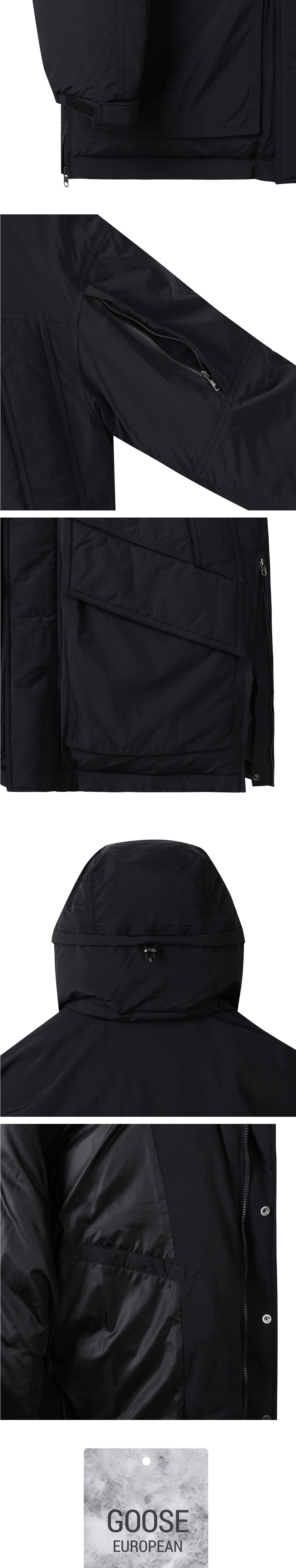 커스텀멜로우 오버사이즈 핏 후드 다운 파카 블랙