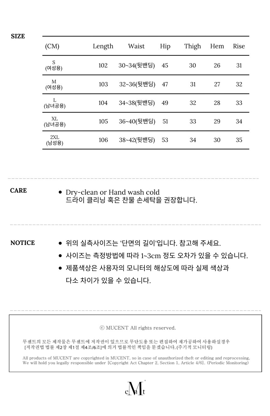 | 총장 | 허리단면 | 엉덩이단면 | 허벅지단면 | 밑위 | 밑단단면 |